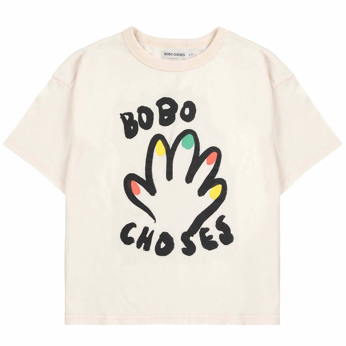 High Five T-Shirt by Bobo Choses. Fresh and fun, this off white tee is designed for everyday comfort. Made from 100% organic cotton, it features short sleeves, a round neck and a loose fit for a relaxed style.