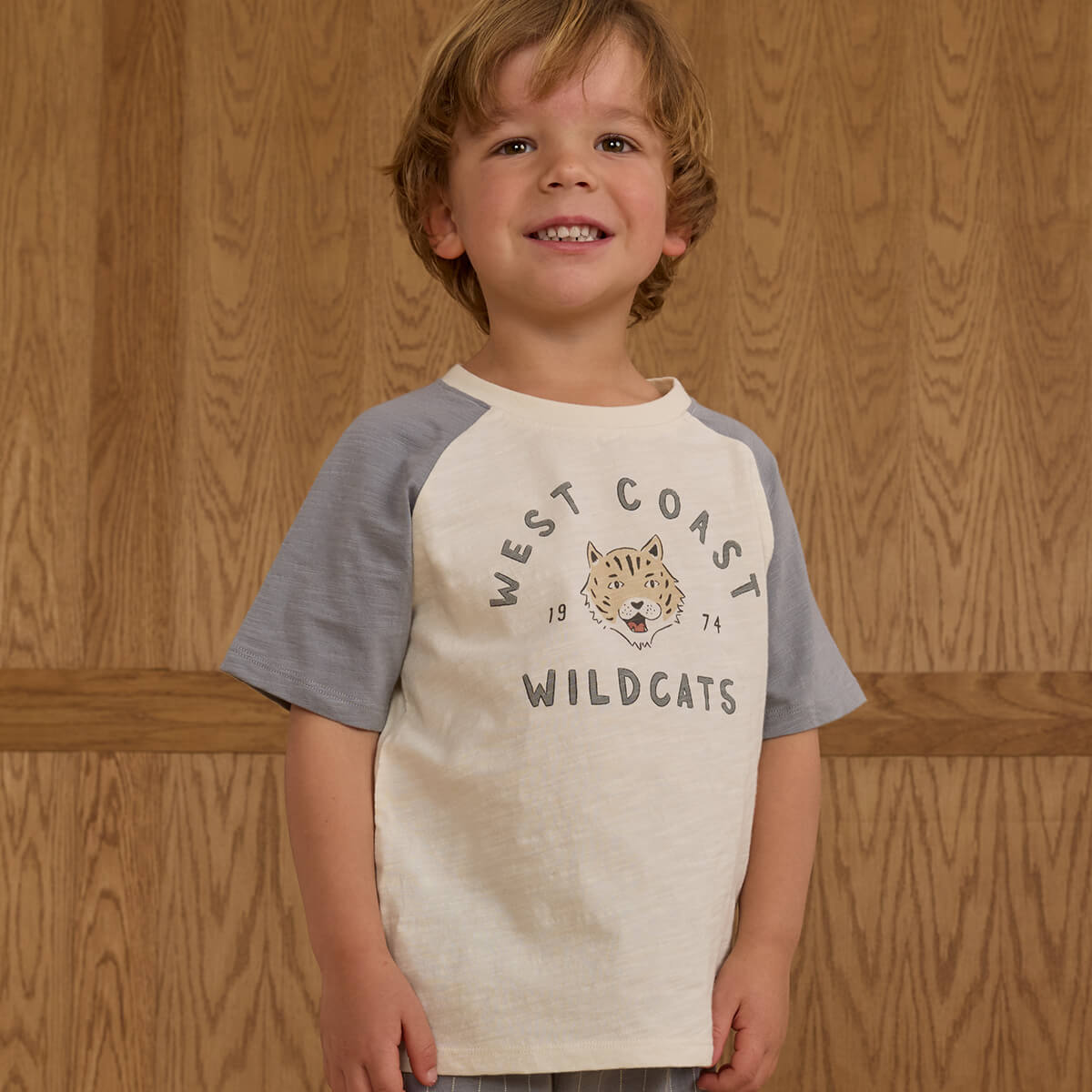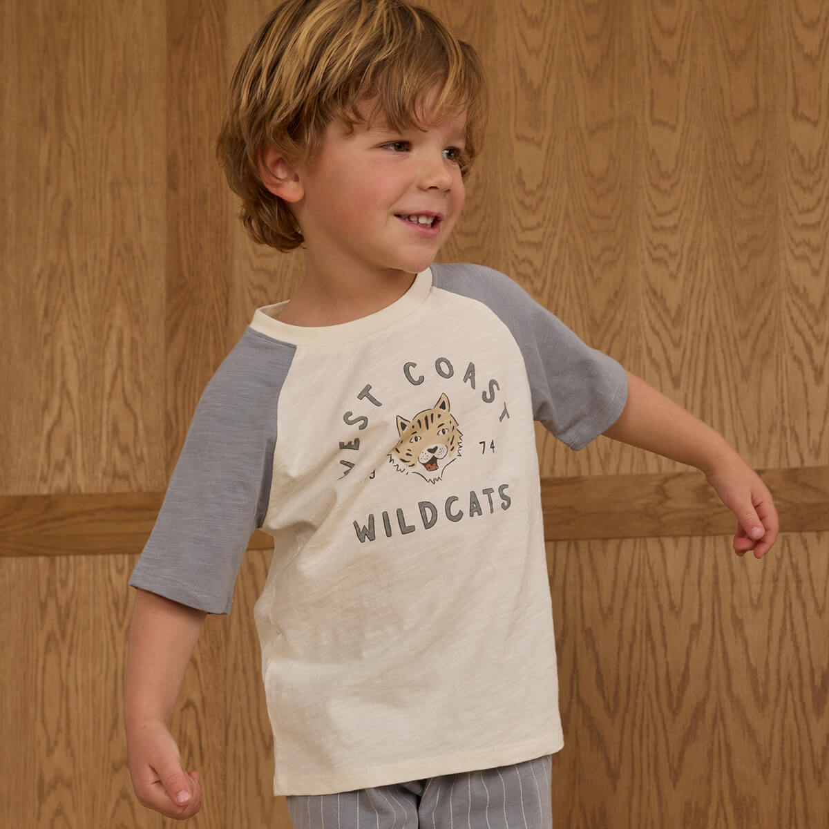 Raglan Tee by Rylee & Cru. Short sleeve t-shirt in soft cotton jersey, featuring contrast raglan sleeves for a classic athletic look.