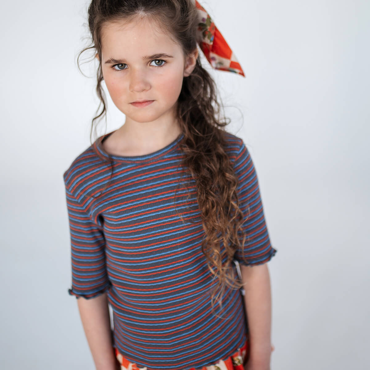 Slim Tee in Fine Grey Fiesta Stripe by Repose AMS