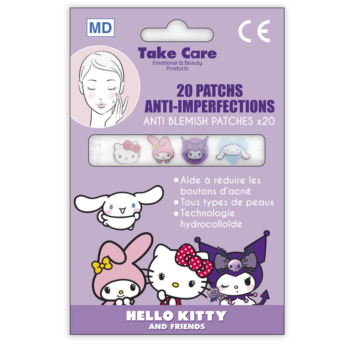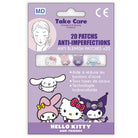 Hello Kitty & Friends Anti-Blemish Patches by Take Care. Say goodbye to blemishes and hello to clearer skin with Hello Kitty and Friends anti-blemish patches. These healing hydrocolloid patches will give your skin the care it deserves, while adding a touch of charm and kawaii to your beauty routine! Features four Sanrio characters - Hello Kitty, My melody, Kuromi and Cinnamoroll.