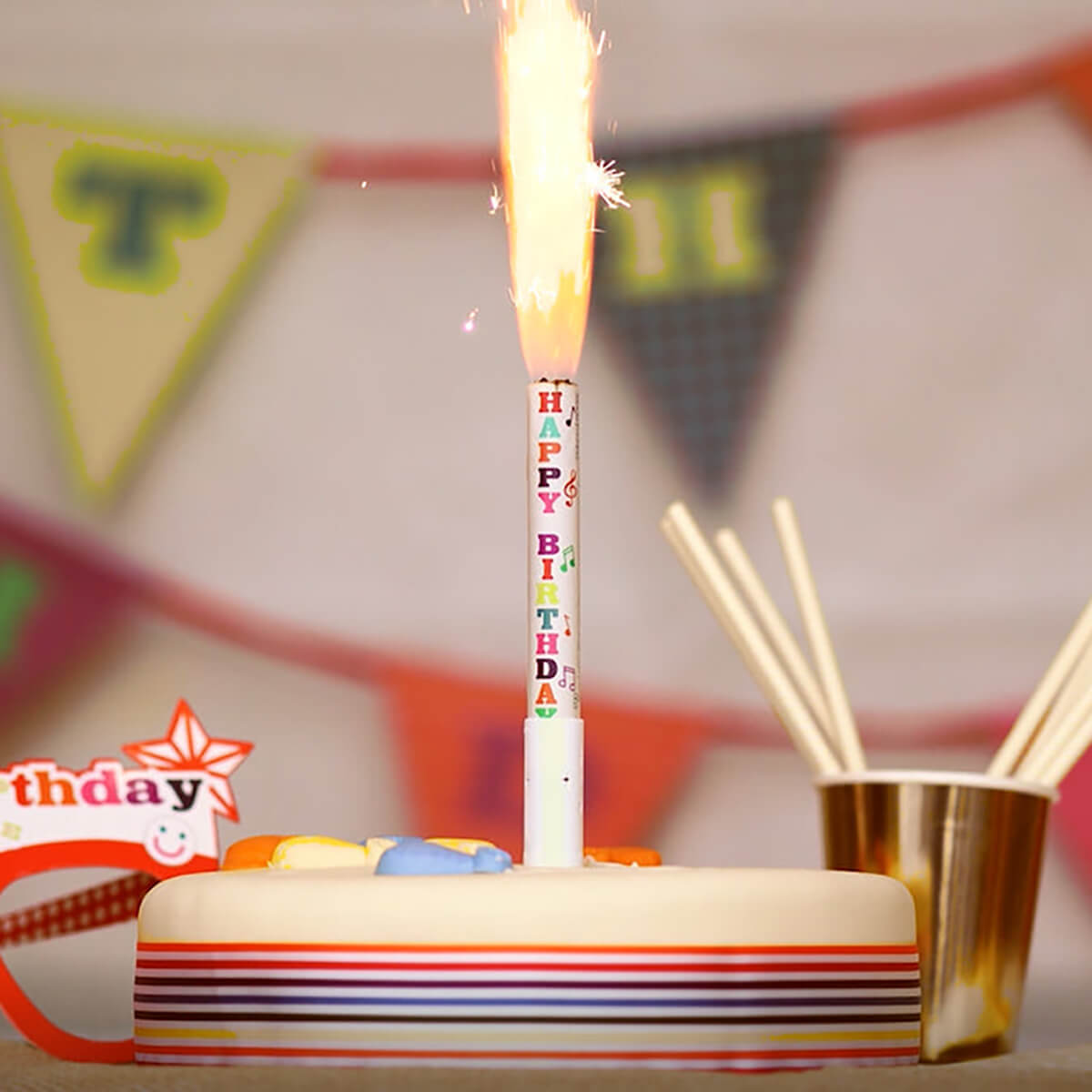 Cake Fountain by Talking Tables. Place in the cake, light and enjoy the show-stopping spectacle! While wowing guests with a large spectacular flame, it also plays the happy birthday tune!