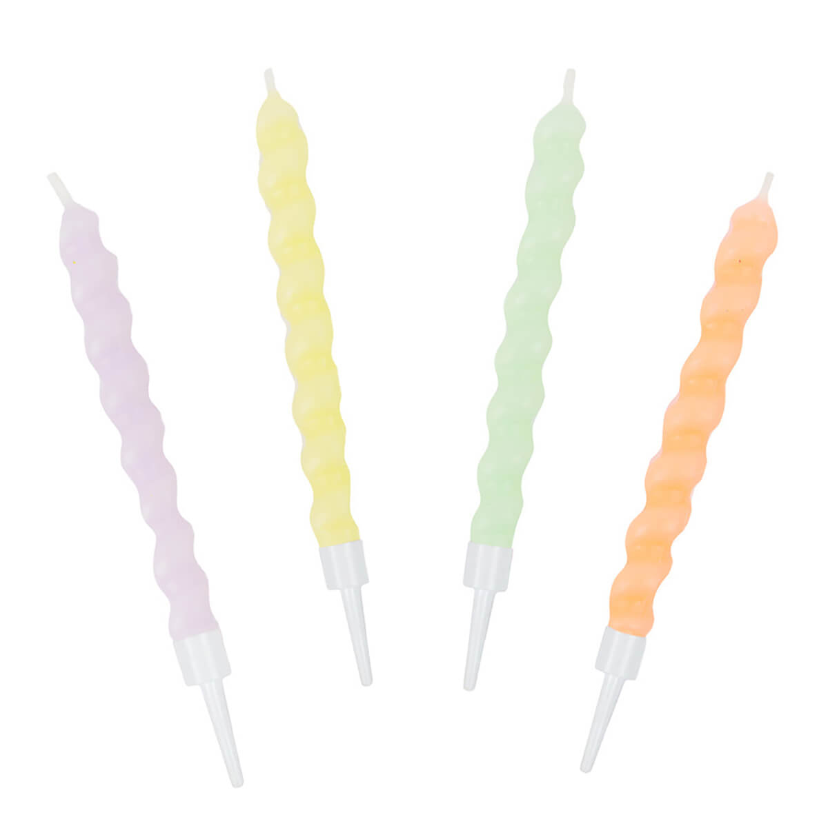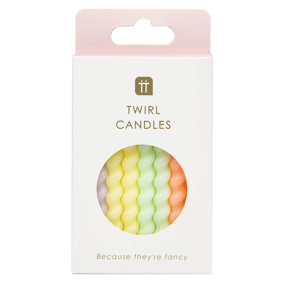 Twirl Birthday Candles by Talking Tables. These twirl pastel candles are a modern twist on classic straight birthday candles. They are Instagramable and fun making them a fancy and unique choice for your customers. Coming in four pastel colours they add pizzazz to any birthday cake.