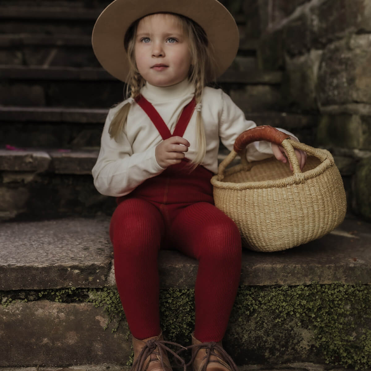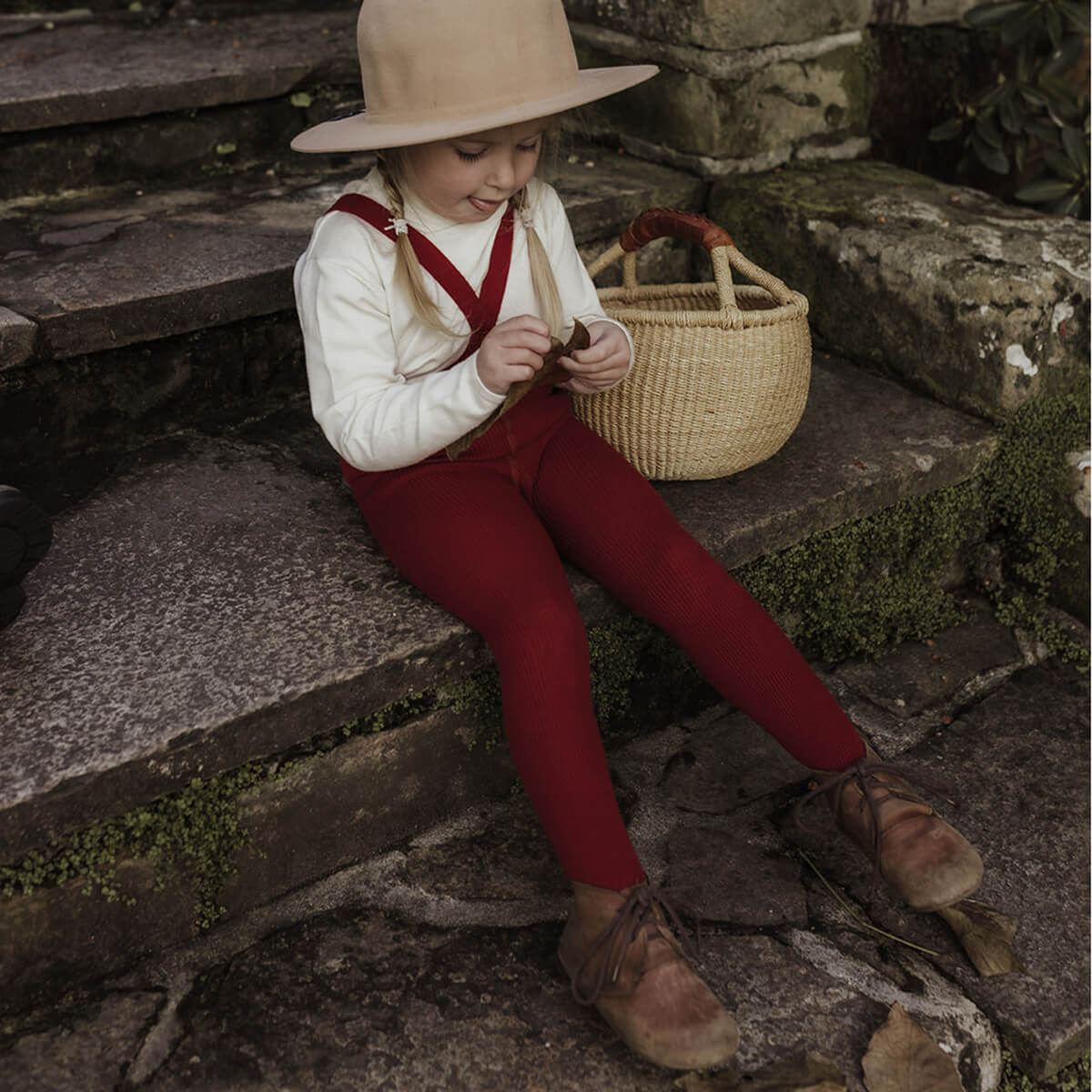 Footed tights with braces by Silly Silas. These retro ribbed footed tights with braces will keep pace with even the most active babies and toddlers. Exceptionally resistant, lusciously soft and made from 100% cotton suitable also for babies with the most sensitive skin.