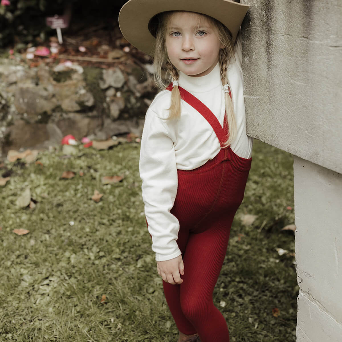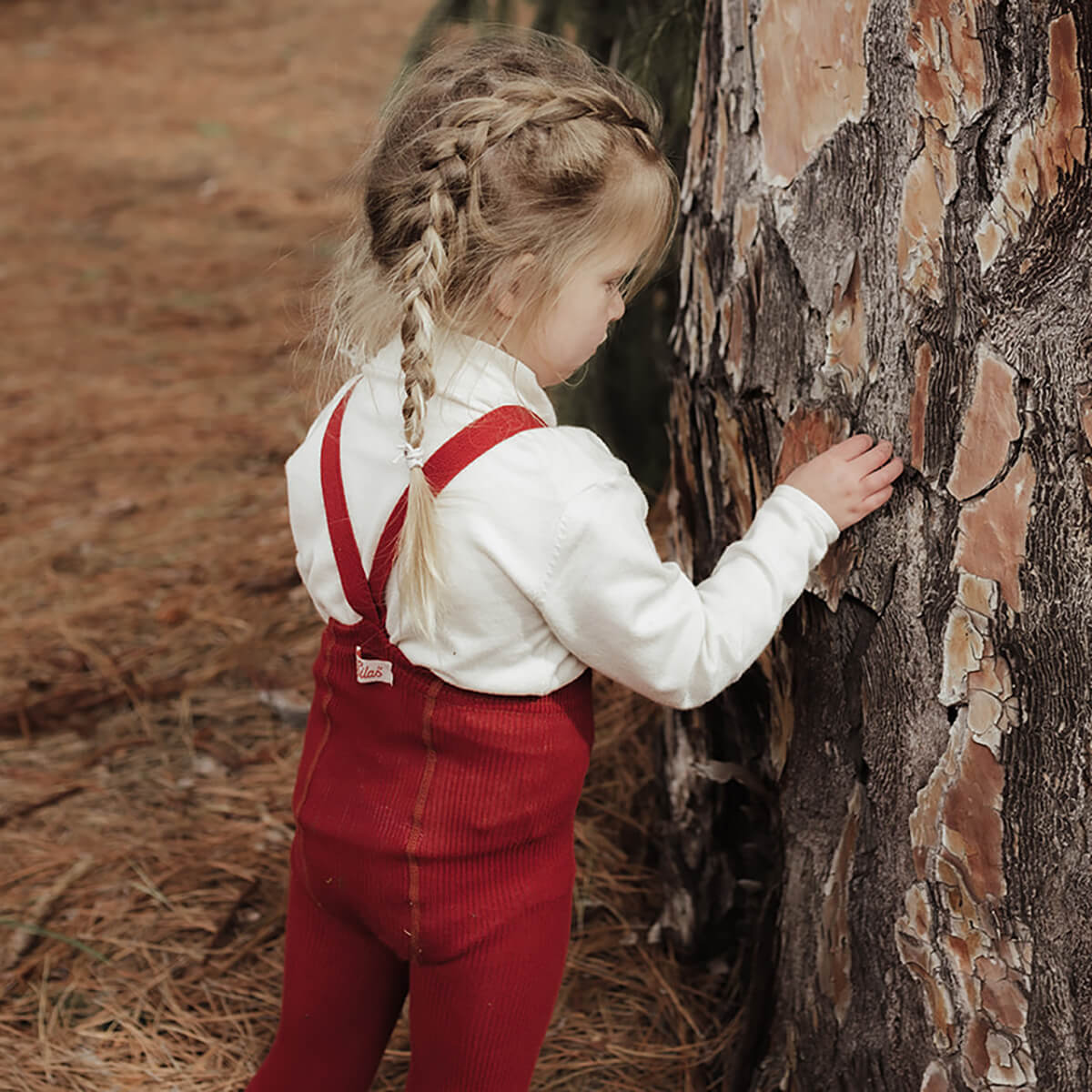 It is important that your little one always wears the tights with braces in the correct way (as shown in all our pictures) with one brace securely placed on the left shoulder and the other brace on the right shoulder in order to avoid abrasions. The braces help little adventurers to freely move while playing and exploring the world and should be always used in the correct position.