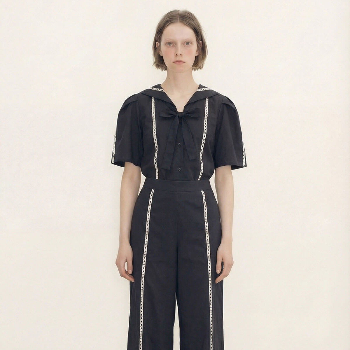 Sailor Neck Blouse in Navy by The Tiny Big Sister