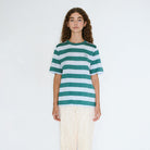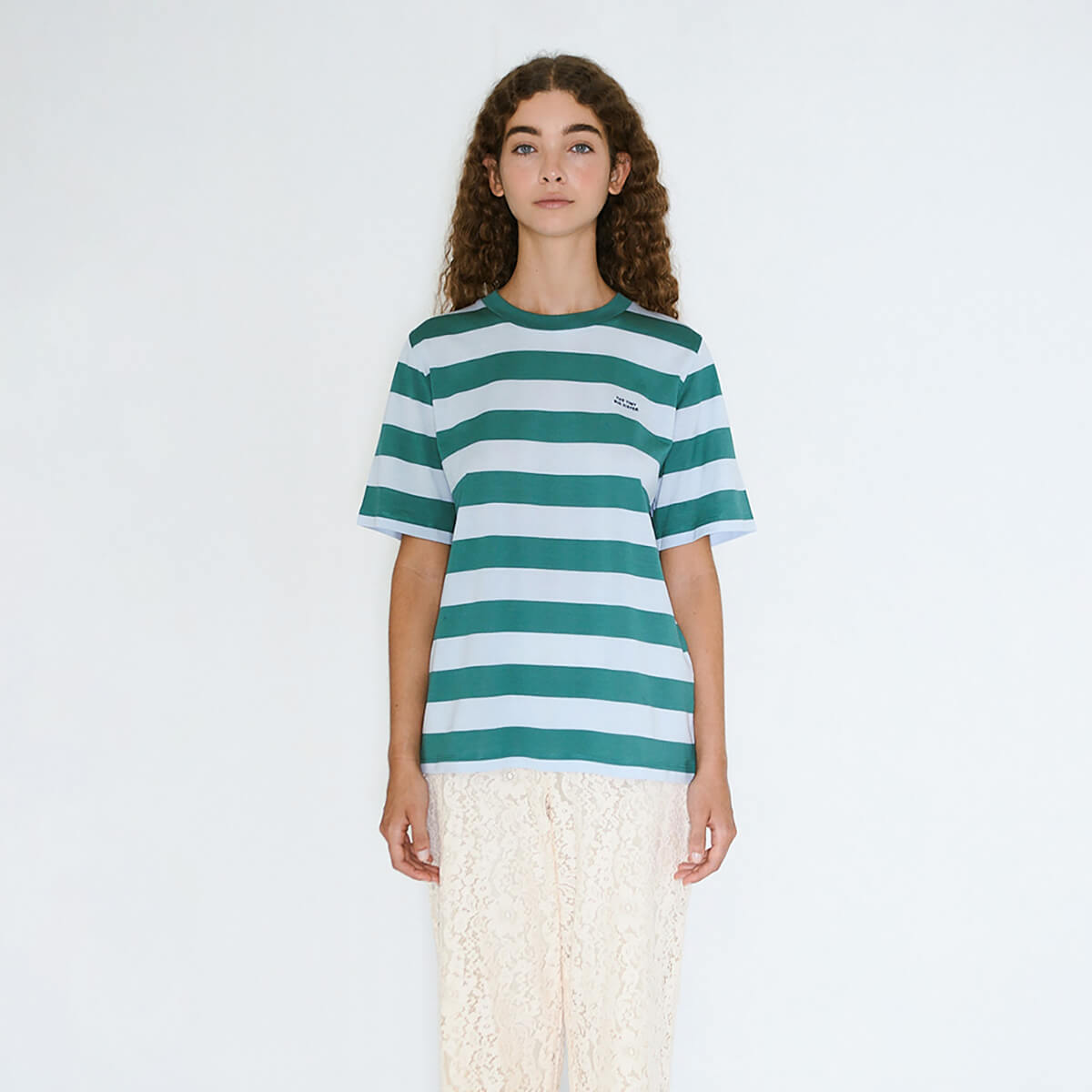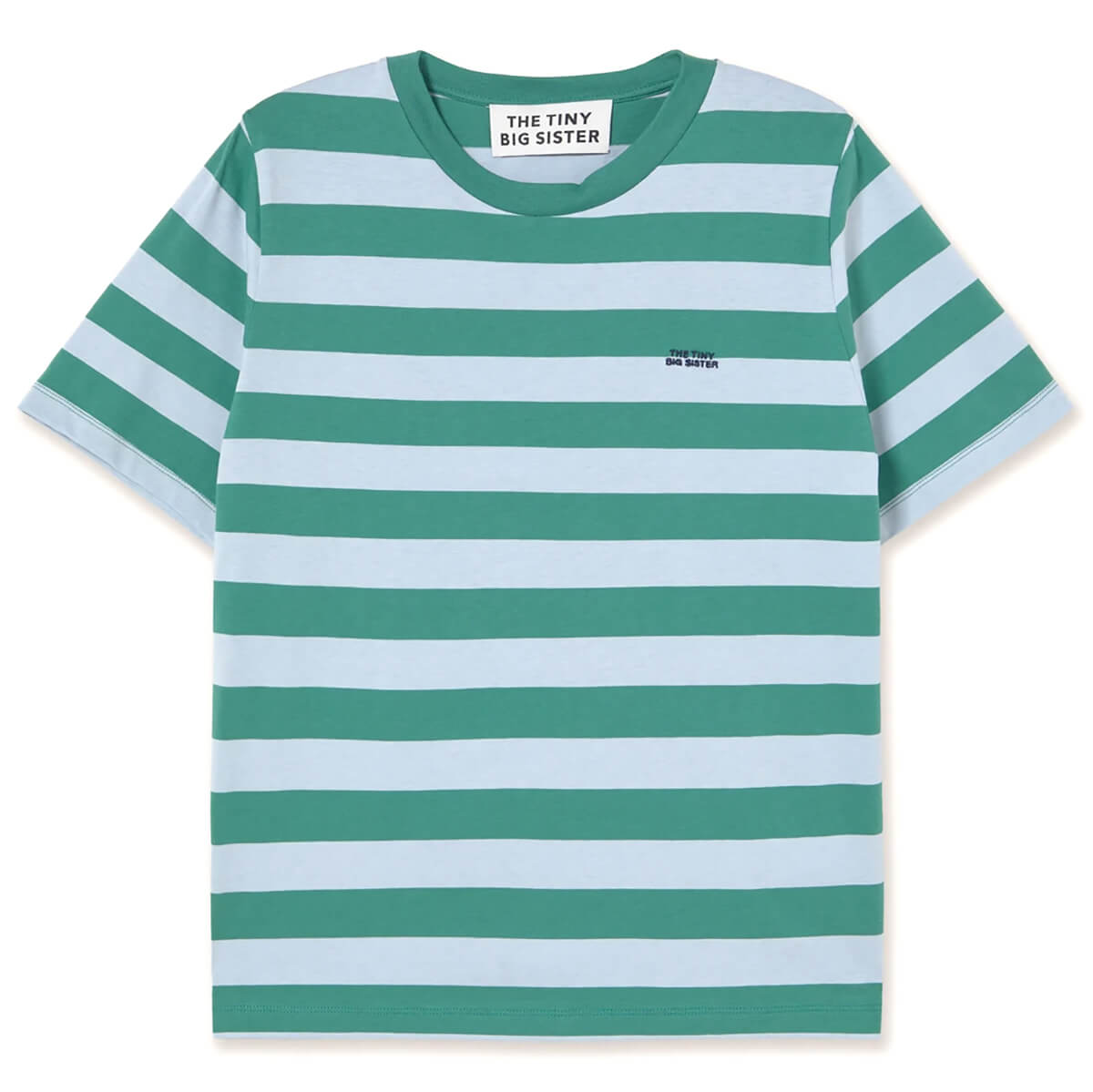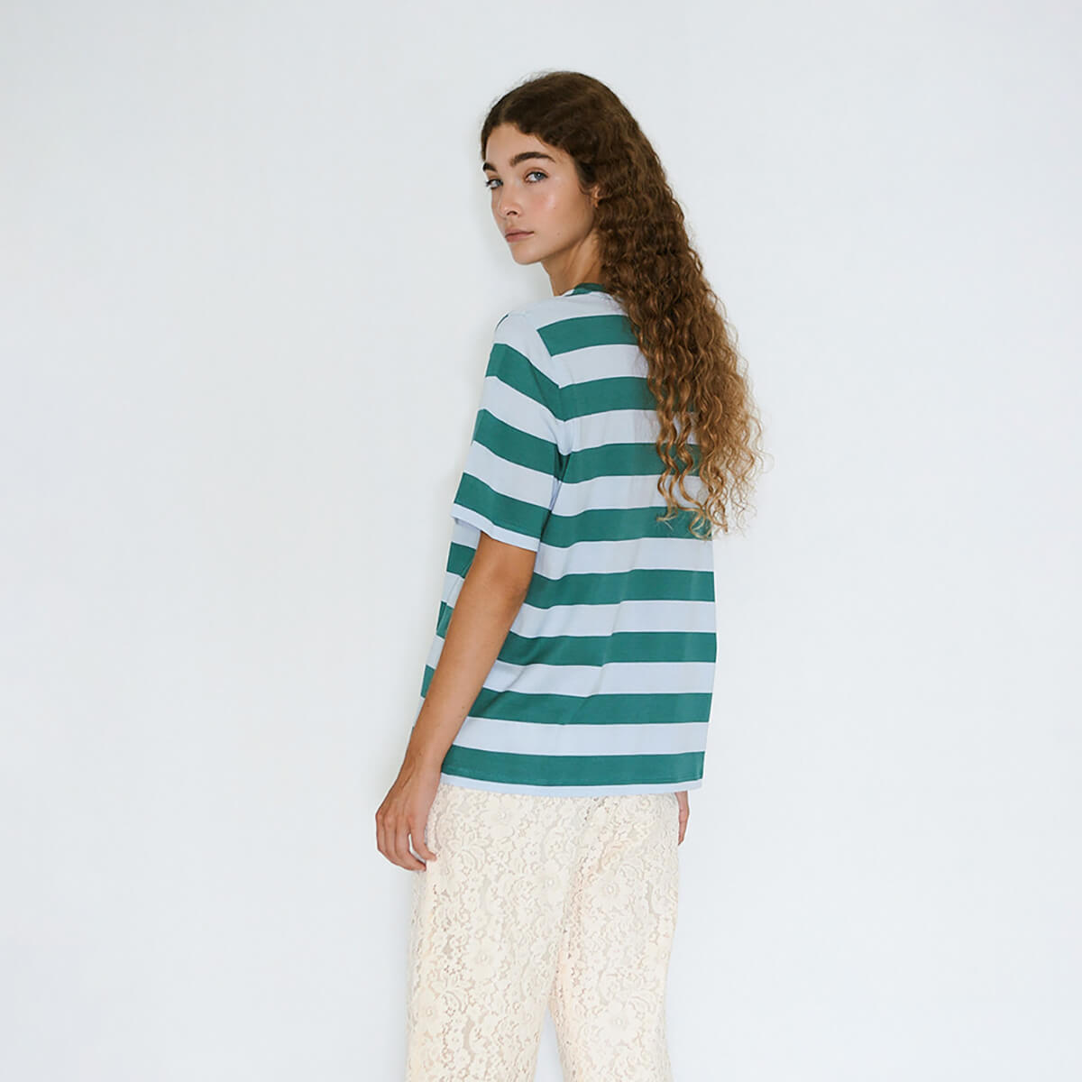 Striped Basic Tee in Dark Green / Washed Blue by The Tiny Big Sister
