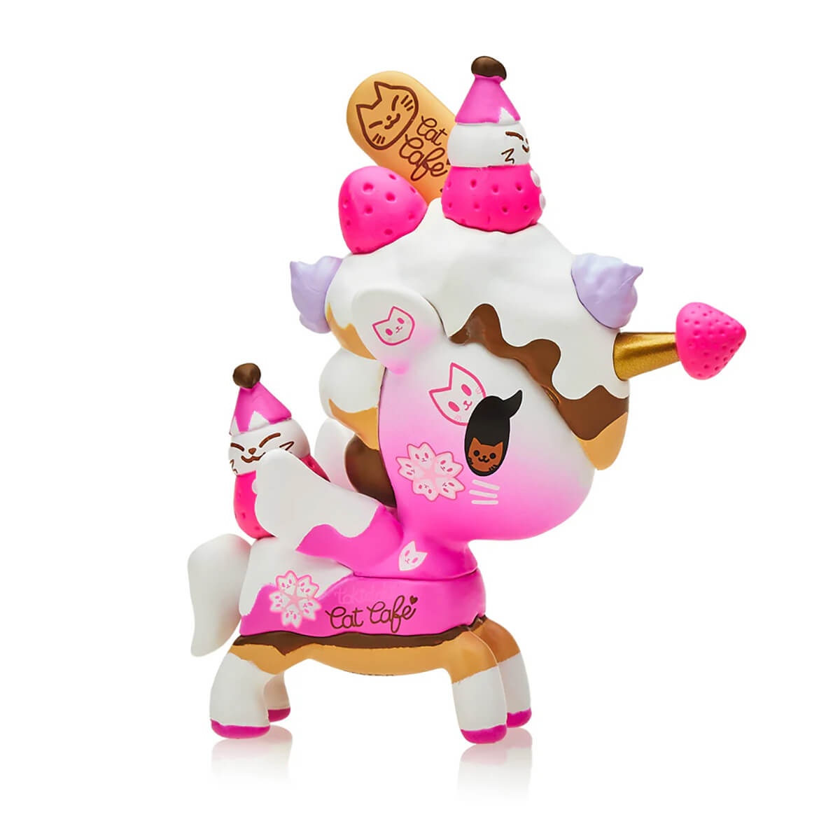 Café Cuties Unicorno Blind Box by Tokidoki. The Café Cuties Unicorno are here to give us a delicious boost of energy so we can face the day and be our best selves. These nine cute Unicorno love to snack on pastries and breakfast foods and sip refreshing, warm drinks while enjoying the company of friends at their local cafe. Enjoy your favorite pastries and drinks while you relax with the Café Cuties Unicorno Blind Box Collectibles.