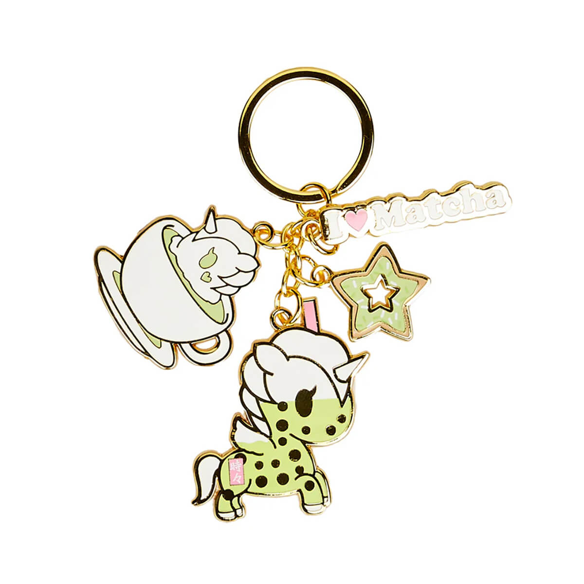 I Love Matcha Charm Keyring by Tokidoki. Metal keychain featuring charms of Yum Yum Unicorno and other super cute charms!