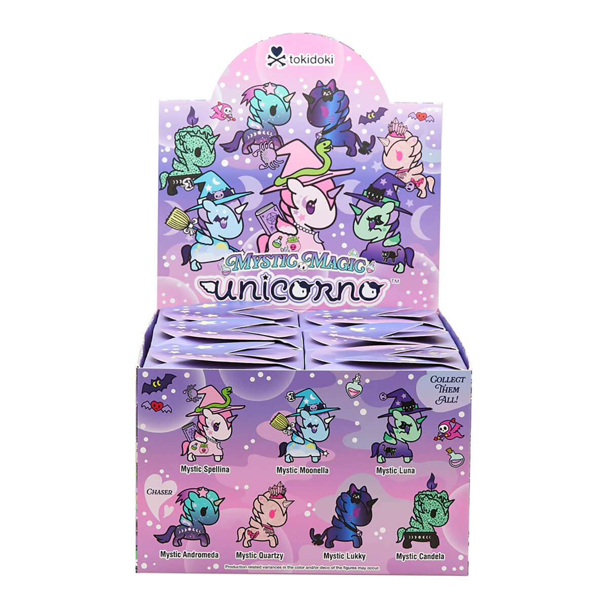 Mystic Magic Unicorno Blind Box by Tokidoki. The Mystic Magic Unicorno are here, soaring through the night to spread magic and mystery wherever they go! This series features seven mystical Unicorno to collect, each with their own enchanting style. The Mystic Magic Unicorno love all things mysterious and fascinating, so come join the fun as they show us that every day is full of magic and wonder if you look for it!
