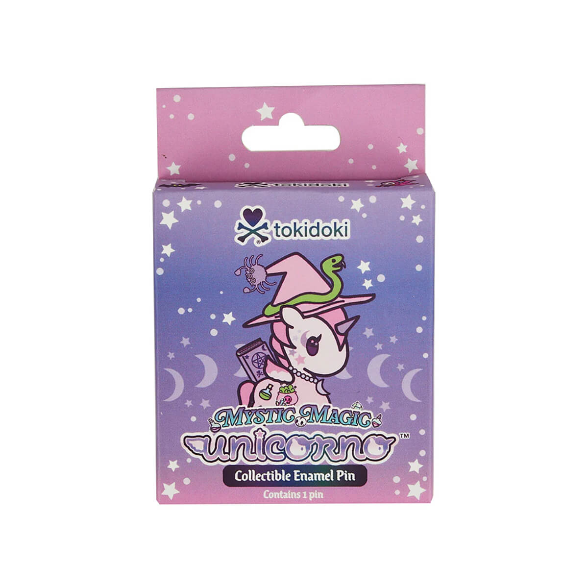 Mystic Unicorno Enamel Pin Blind Box by Tokidoki. The Mystic Magic Collection for Comic-Con is here, spreading magic and mystery. The Mystic Magic Collection loves all things mysterious and fascinating, and these enamel pin blind box collectibles will add magic and wonder to evrything you pin them on.