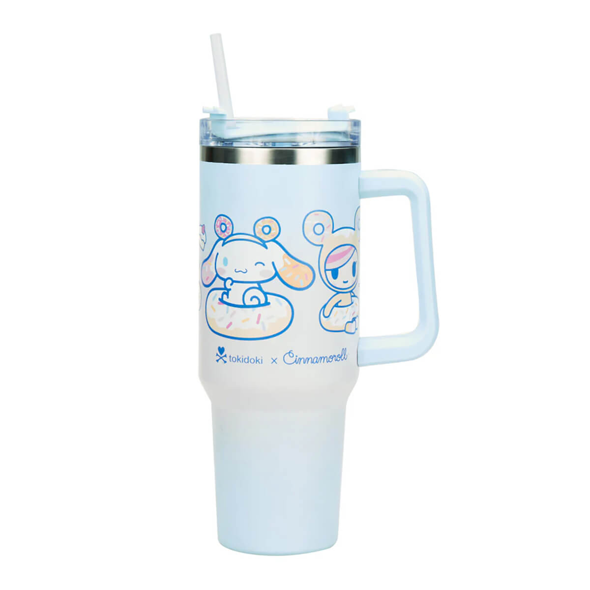Tokidoki x Cinnamoroll Sweet Treats Tumbler (40oz) by Tokidoki. Enjoy your favourite drink with this Tokidoki x Cinnamoroll Sweet Treats stainless steel tumbler with handle and straw.