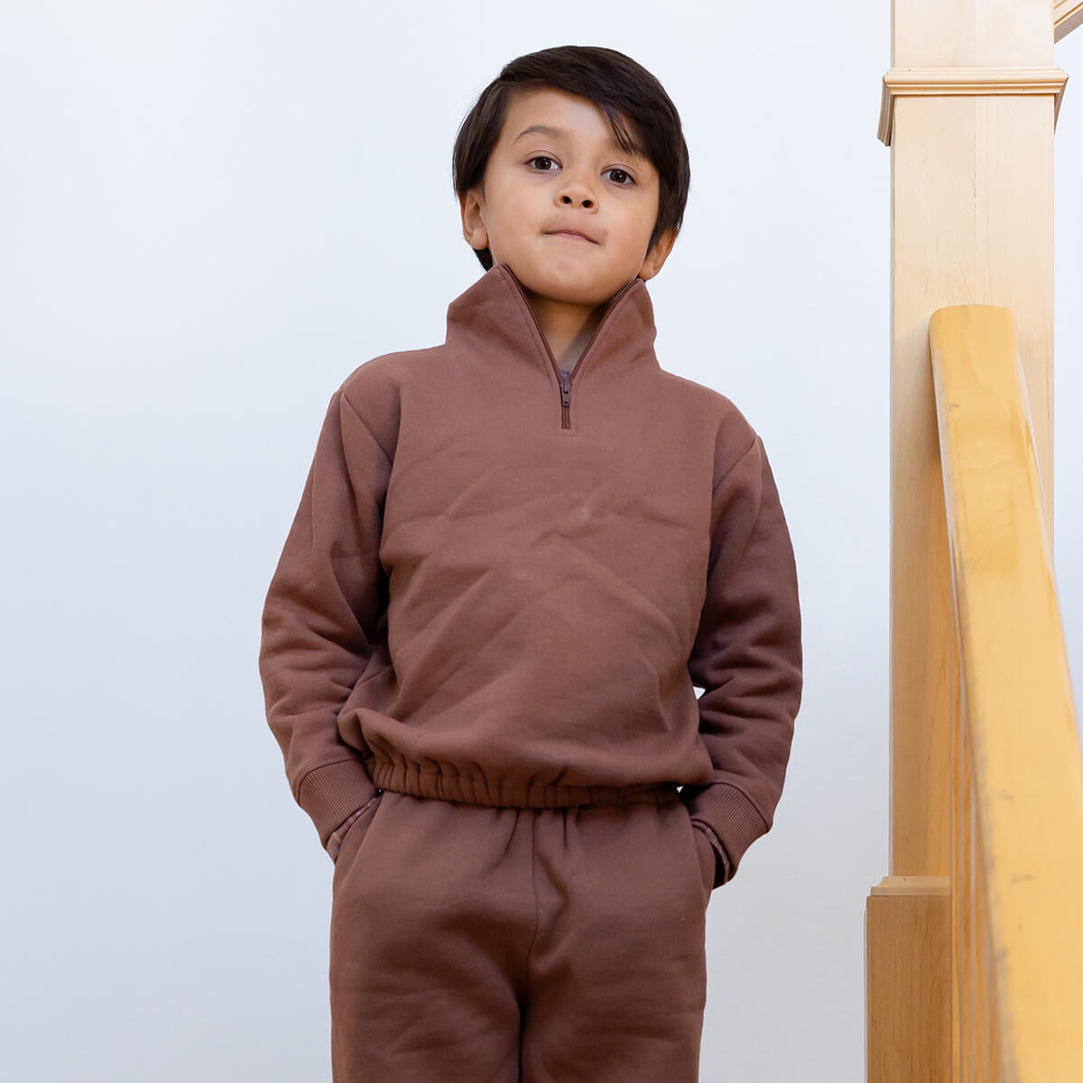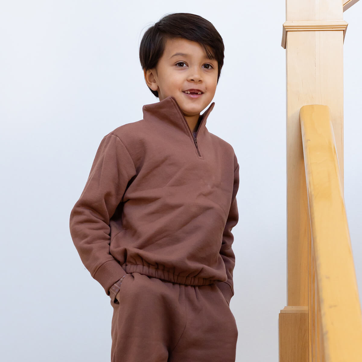 Pima Fleece Zip Sweatshirt in Nutmeg by Iver & Isla
