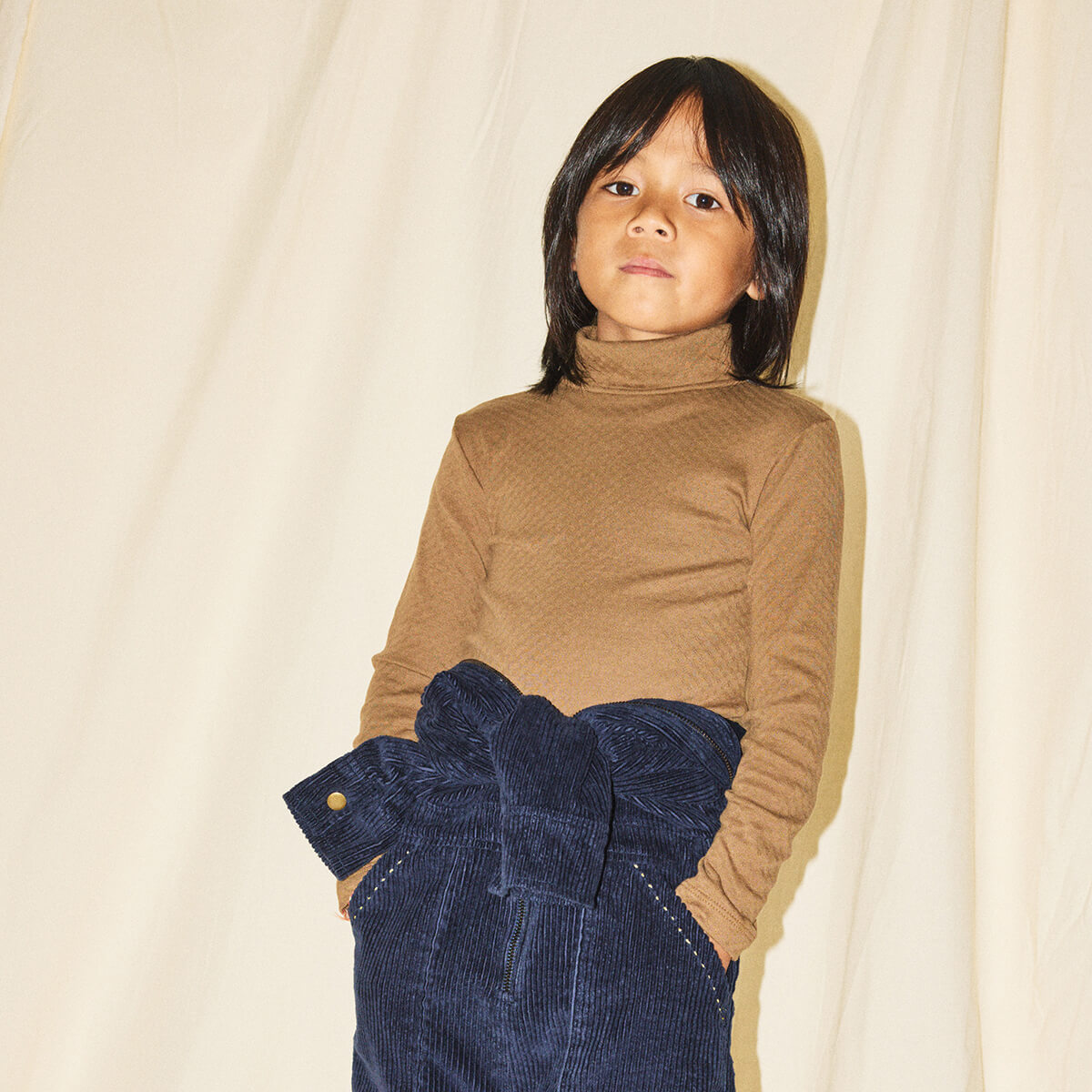 Turtleneck by Misha & Puff. A classic long-sleeved turtleneck in organic Pima cotton, featuring a delicate pointelle pattern and snap closure at the back neck. Perfect for layering.