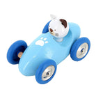 Mariette the cat in her car by Vilac.  Made from hard beechwood with rubber tyres and produced in the Vilac workshop in the Jura Mountains in France.  Beautifully designed by specialist French toymakers Vilac, who have been producing timeless heirloom toys since 1911.