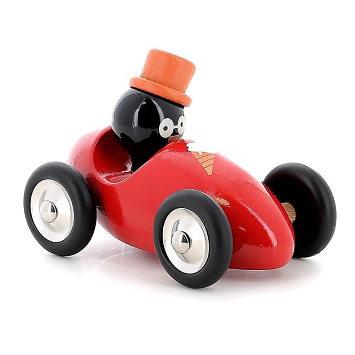 Rene the penguin in his car by Vilac.  Made from hard beechwood with rubber tyres and produced in the Vilac workshop in the Jura Mountains in France.  Beautifully designed by specialist French toymakers Vilac, who have been producing timeless heirloom toys since 1911.