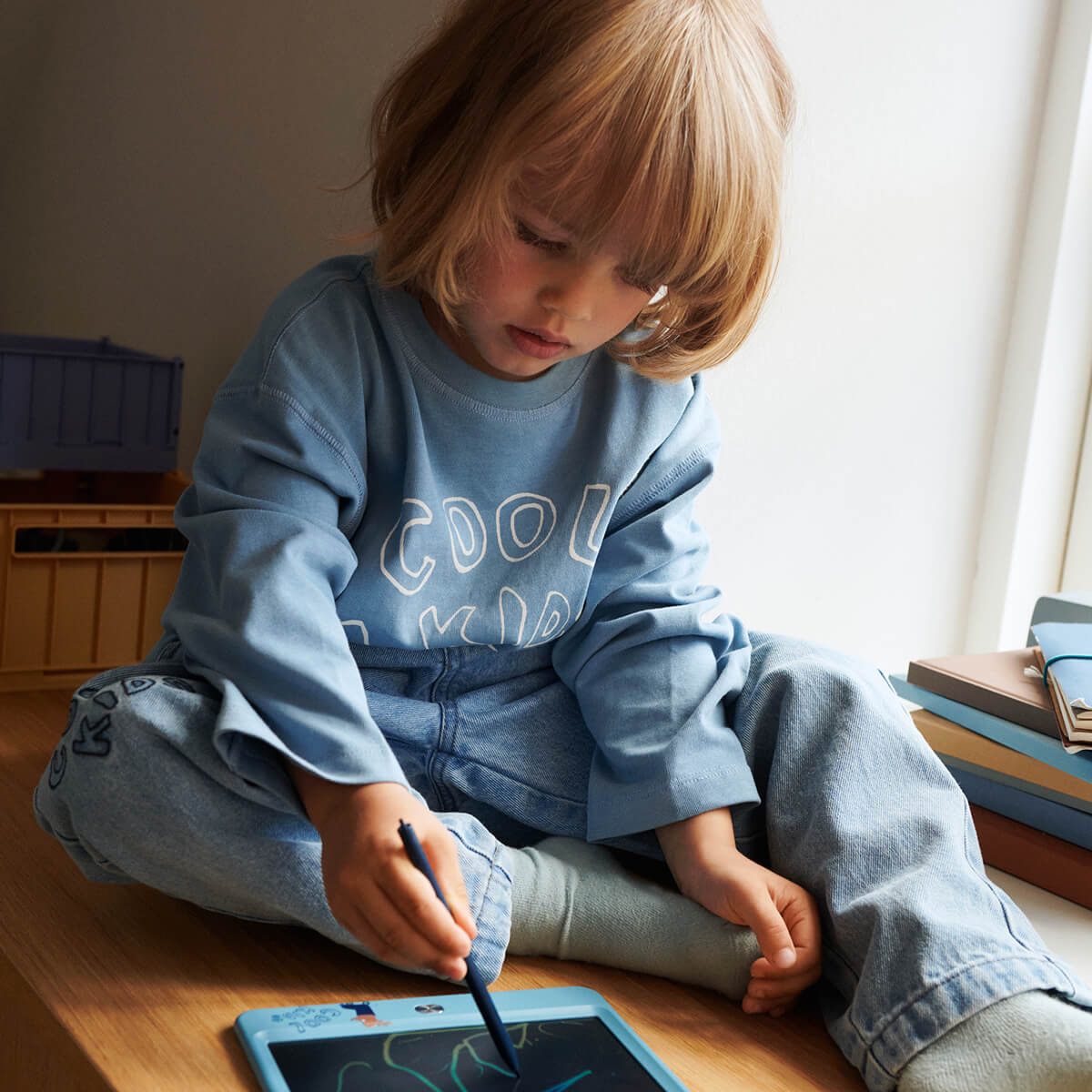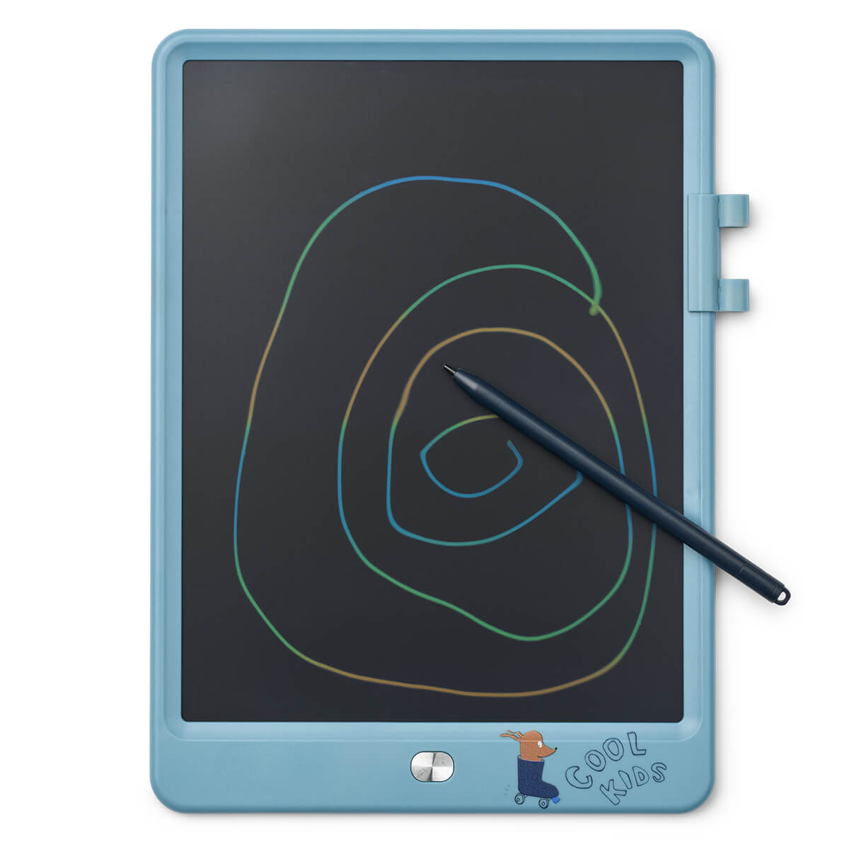 Zora Magic Drawing Board by Liewood. LCD drawing board designed for endless creativity, complete with a pen. Lightweight and reusable, it features a screen lock for saving drawings, a simple erase button, and a secure pen holder — perfect for on-the-go imagination.