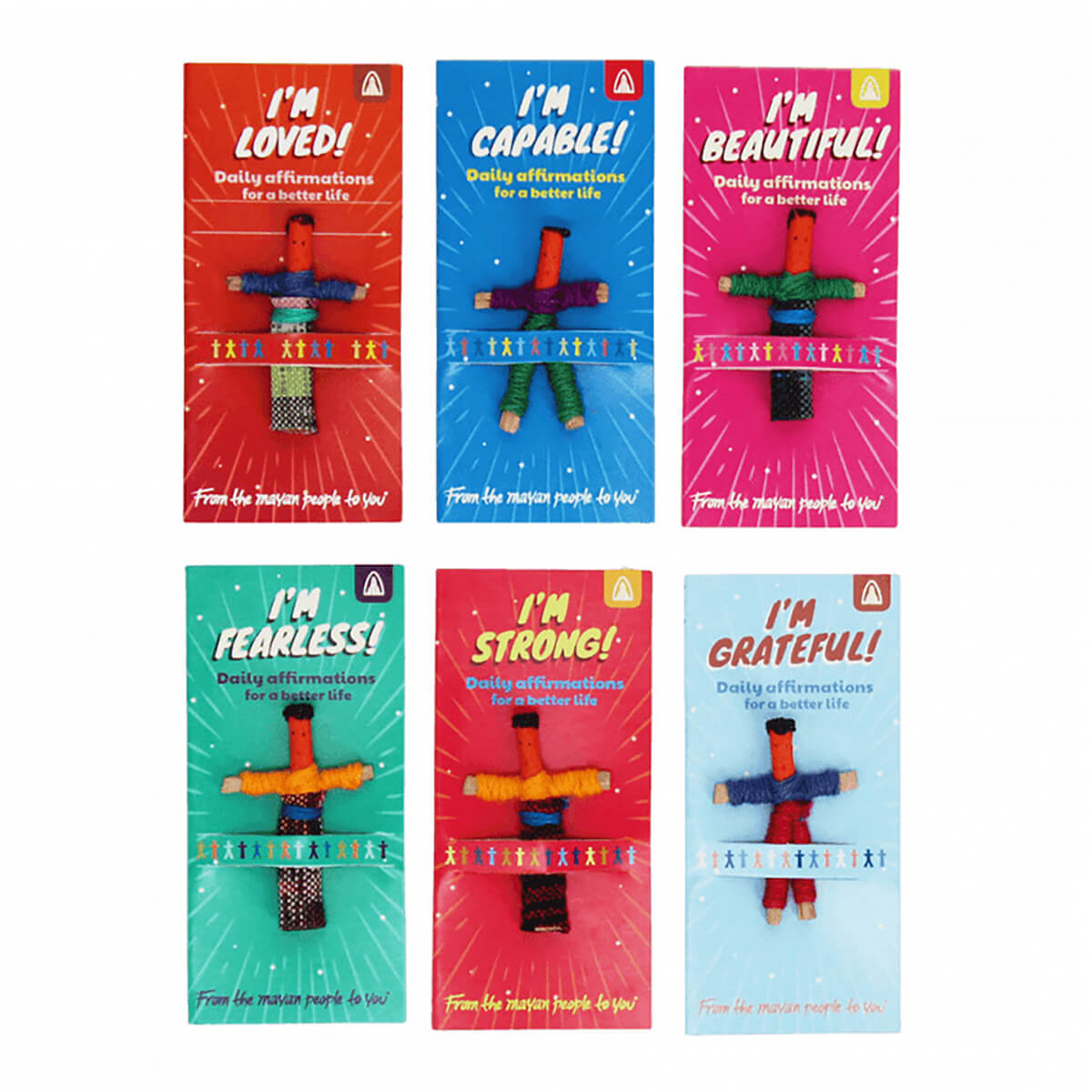 Worry Doll Self Affirmations by Rex London. Live more, worry less! Give the perfect gift of random kindness for someone who needs a little pick-me-up with a self-affirmation worry doll. There is a story that when the Mayan people of Guatemala have worries, they tell them to worry dolls and then put these under their pillow at night. By morning, the worry dolls have taken all the worries away. Each doll is handmade in Guatemala.