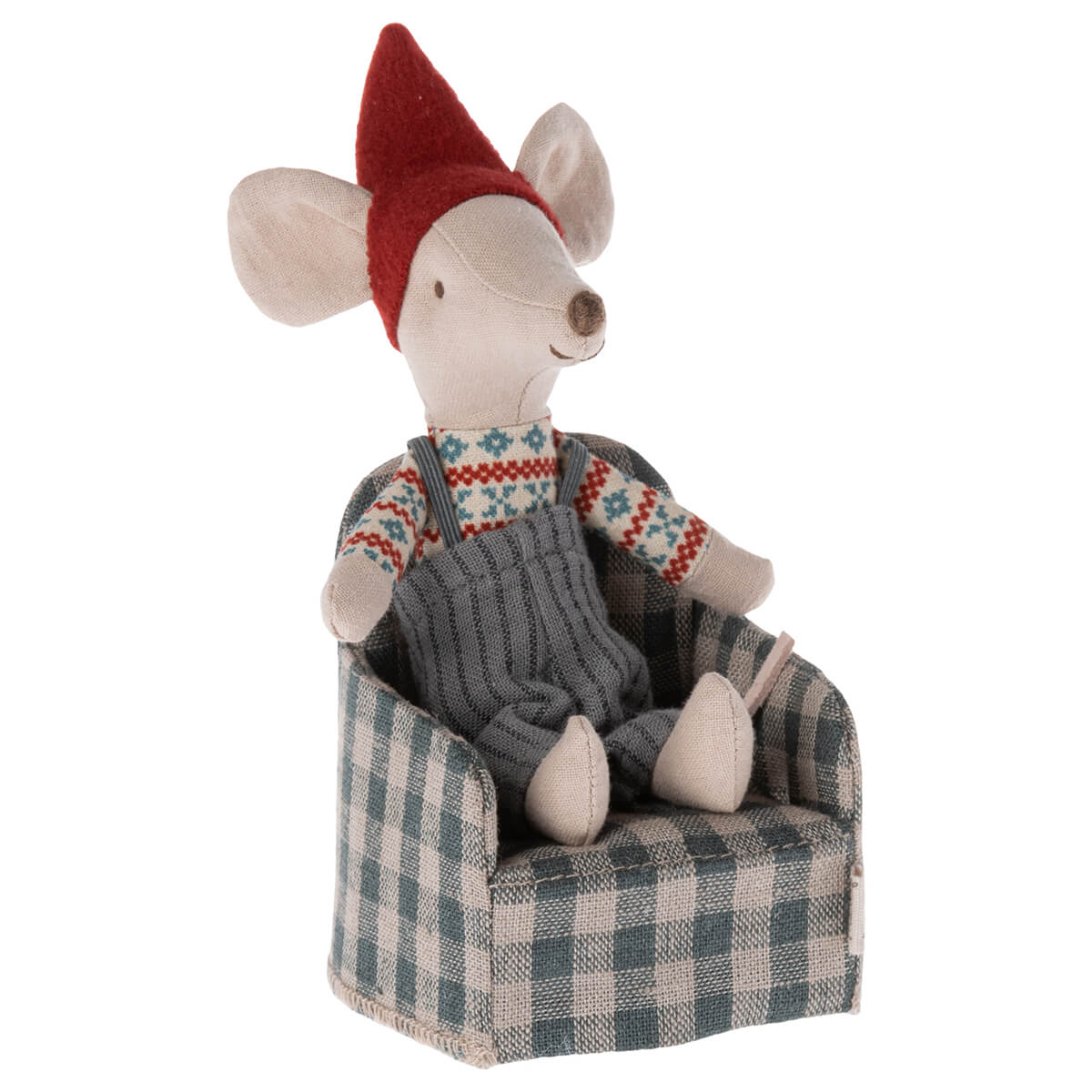 Mouse chair by Maileg. A perfect place for your small Maileg friends to take a rest. It fits nicely into the Maileg Gingerbread House. The chair is delivered flat packed and is easy to fold and assemble.