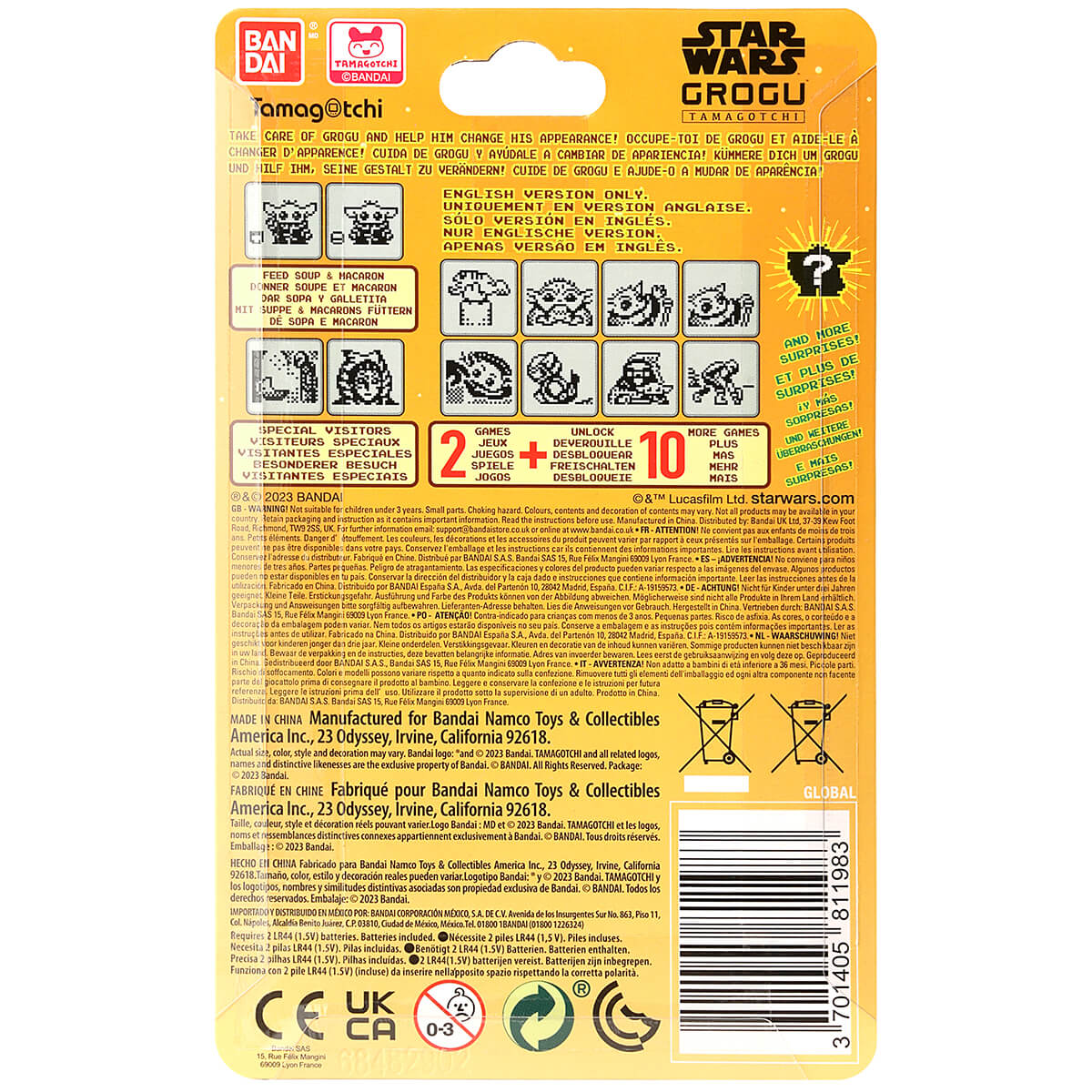 Star Wars Grogu Use The Force Tamagotchi by Bandai. The Star Wars Grogu Tamagotchi nano brings the beloved character to the palm of your hand like never before. It’s up to you to take care of Grogu, and how you do will change him into one of 12 different appearances, this includes three secret styles! Play two different mini-games, along with a third that alternates depending on how you interact with Grogu.