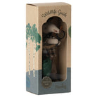 Wildlife guide mouse by Maileg. This wildlife guide mouse is ready for a hiking trip. The guide is dressed for walking and brings a sleeping bag and a magnifying glass to explore nature. This style is dad/mum size and has magnets in the hands.