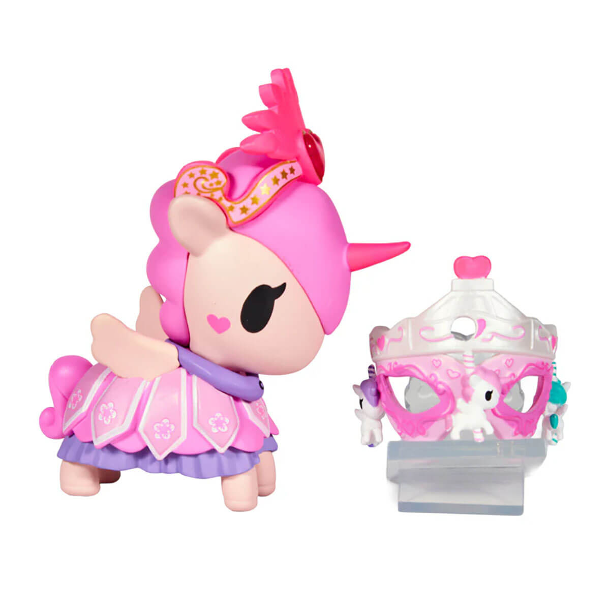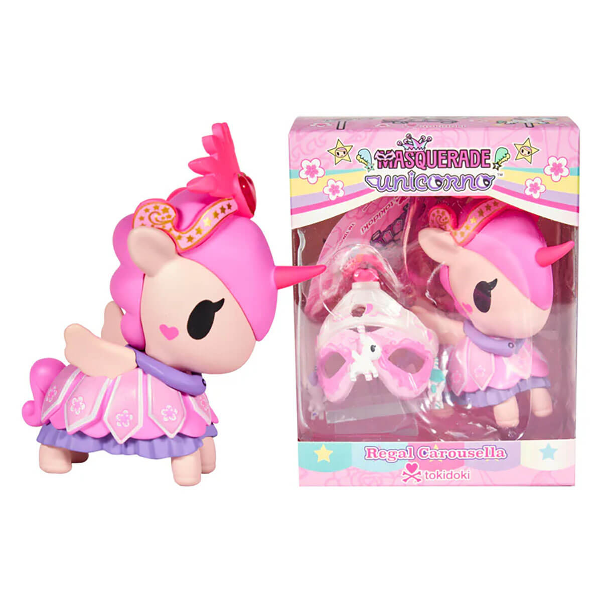 After Dark Masquerade Unicorno Regal Carousella (Special Edition) by Tokidoki. Take a spin with Regal Carousel, the Masquerade Unicorno Special Edition! Inspired by classic carousel charm, this elegant Unicorno features soft pastel tones, sculpted details, and a graceful pose fit for the grandest masquerade. Make her the centerpiece of your Masquerade Unicorno collection today!