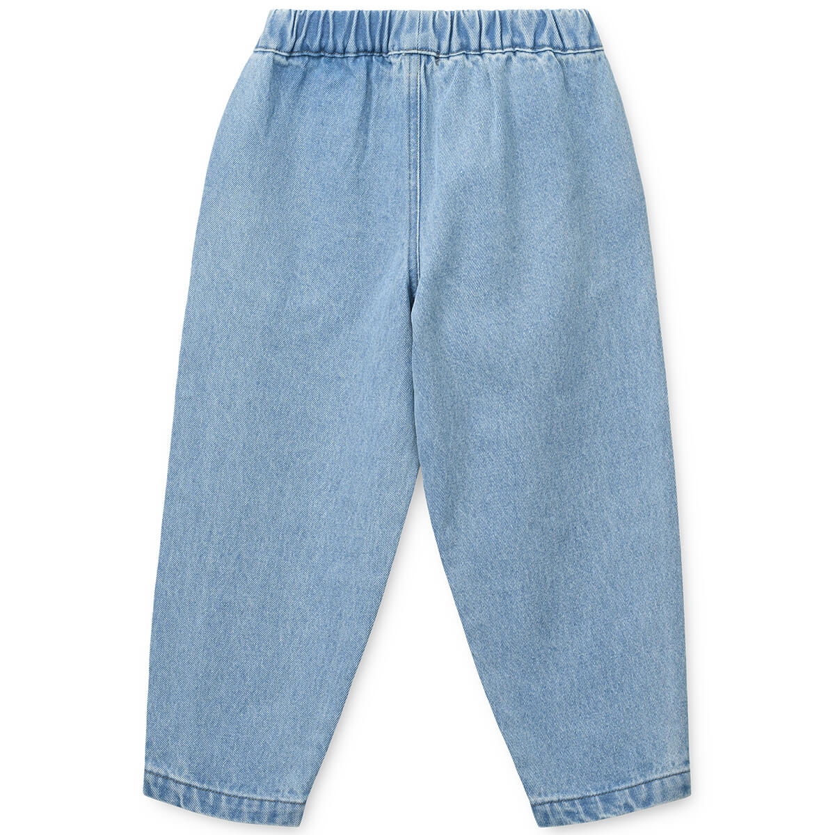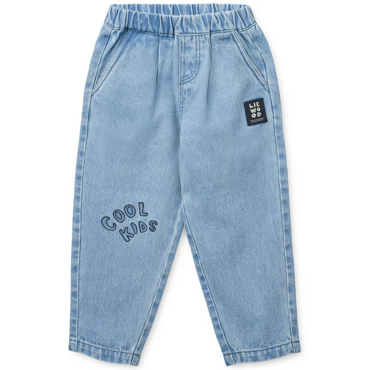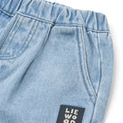 Borris Denim Pants by Liewood. Cool denim trousers in soft cotton. Relaxed fit and curved legs with small pleats in the front and slanting side pockets. Comfortable fit with an adjustable elastic inside waistband.