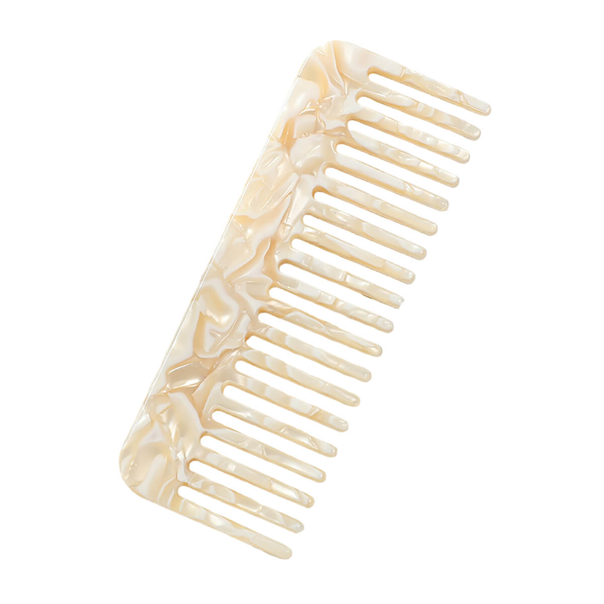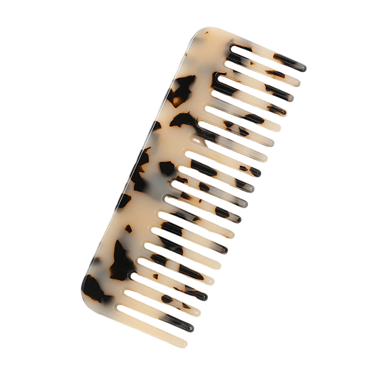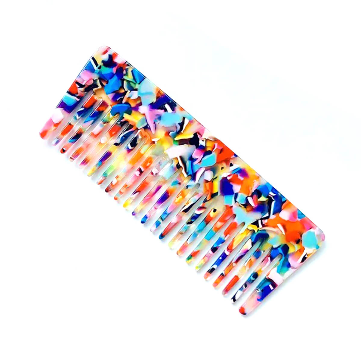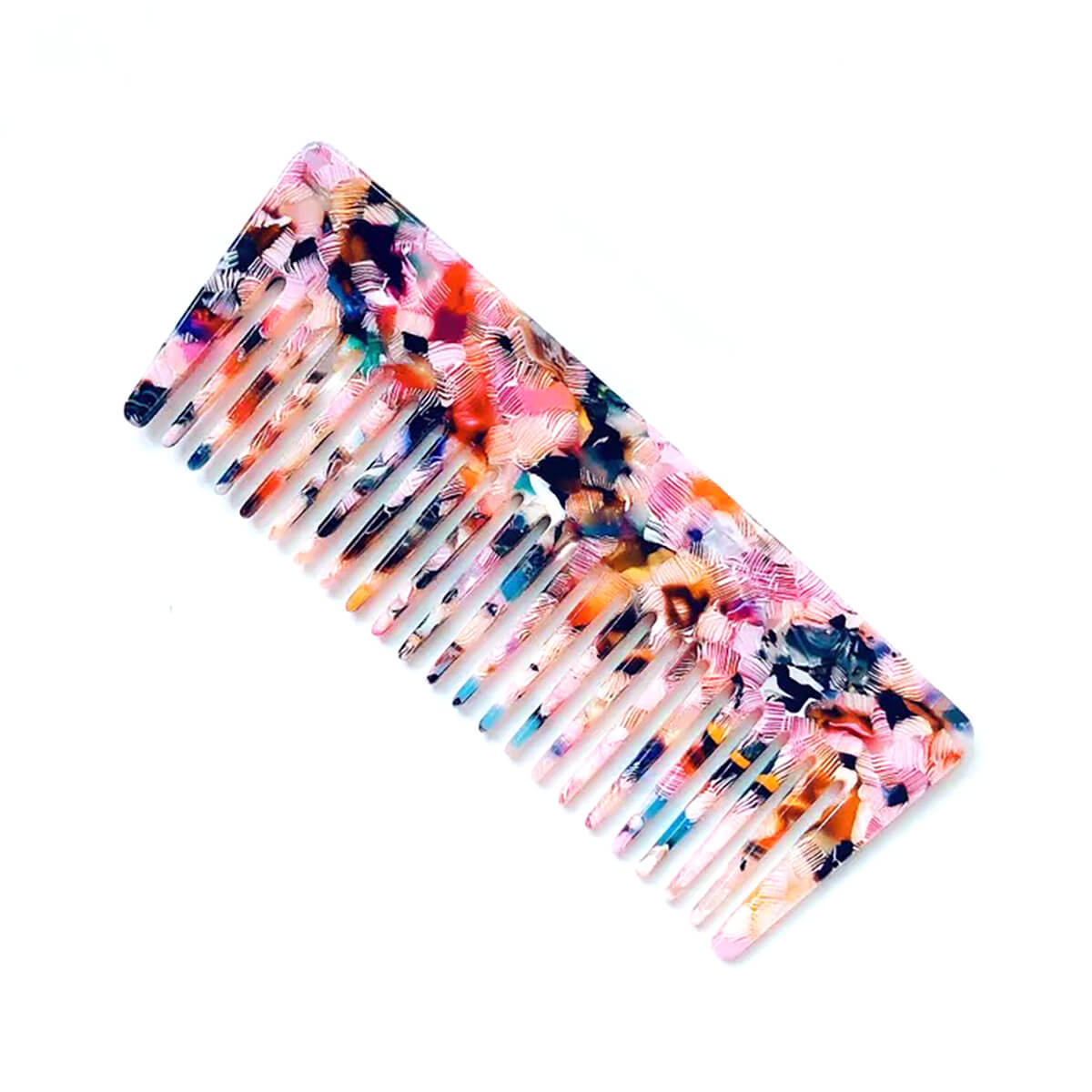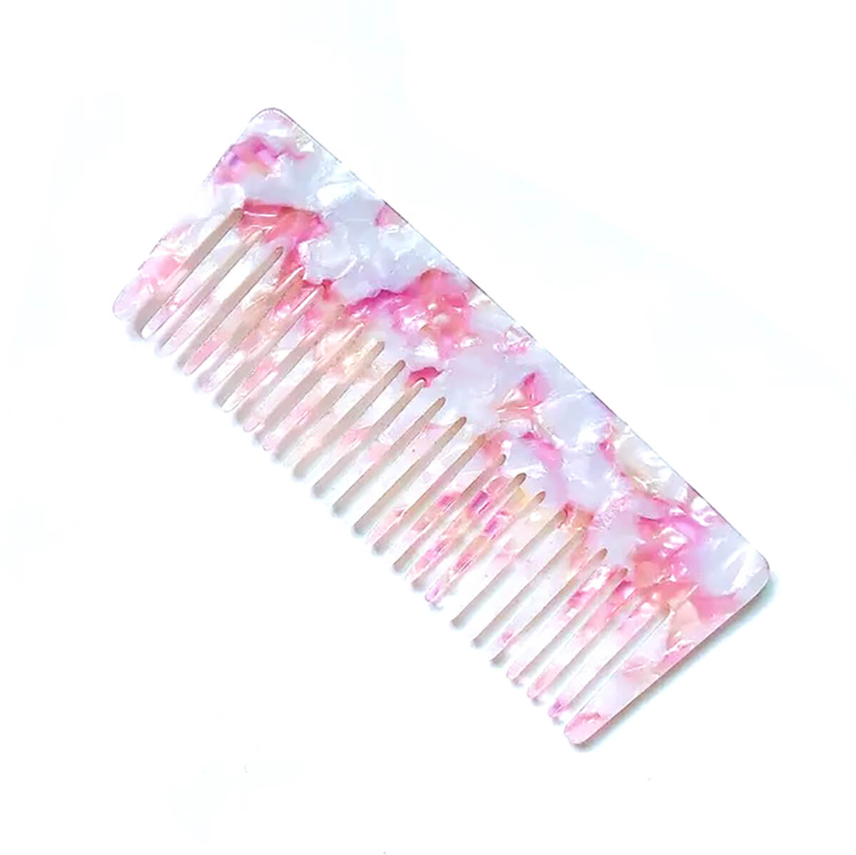 Acetate wide tooth comb by Hello Sakura. Full acetate chunky wide tooth hair comb for detangling hair with ease! The perfect size for any cosmetic bag or handbag. Made from plant-based eco-friendly cellulose acetate.