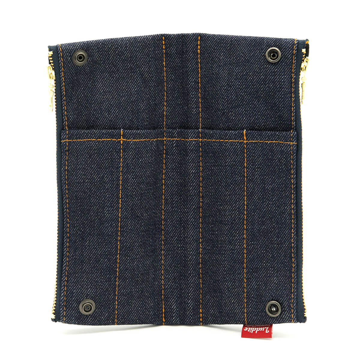 Bendy Pen Case in Okayama Denim by Luddite. The Luddite Bendy Pen Case is a refined storage solution crafted in Japan, offering a balance of understated elegance and practical design. This case features a clever foldable design which can be used either open or closed. When clipped together, there is access to two zipper compartments and when unclipped it leads to five hidden pen sleeves. This thoughtfully made case features Okayama Denim, an iconic Japanese textile known for its strength, texture, and natural beauty. With its robust construction and timeless aesthetic, this case adds a touch of craftsmanship to your everyday carry.