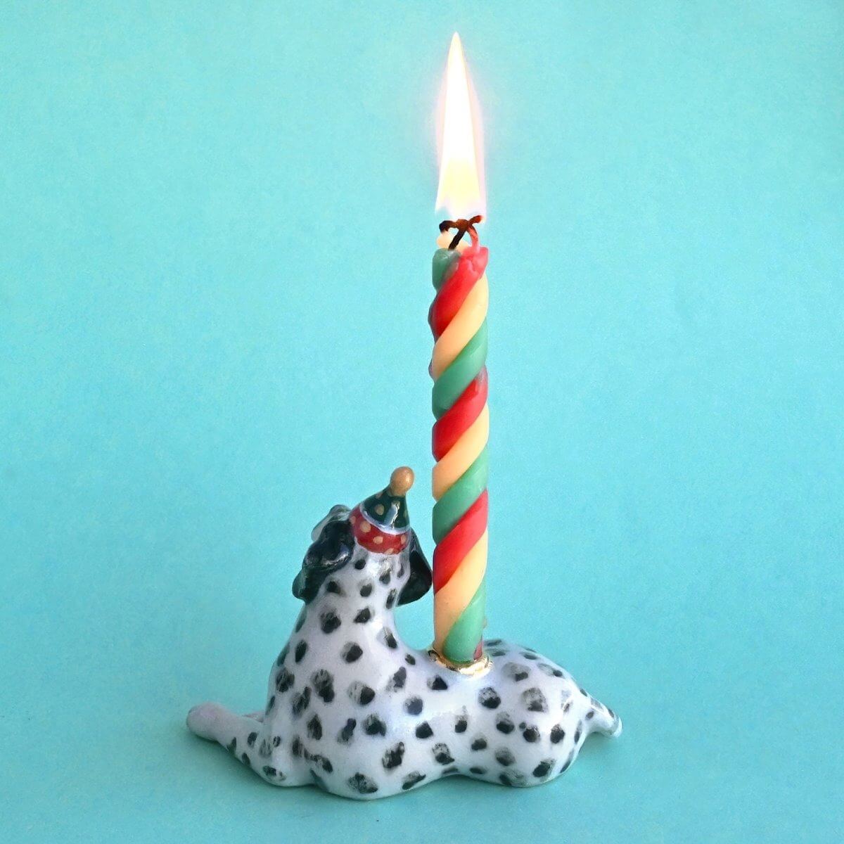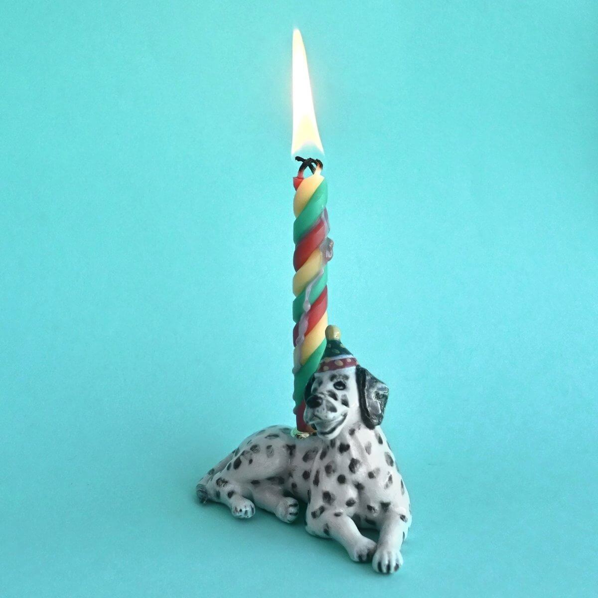 Dalmatian Ceramic Cake Topper by Camp Hollow. Crafted in fine porcelain and meticulously hand-painted, this beautiful heirloom quality candle holder will celebrate every birthday and occasion for years to come.
