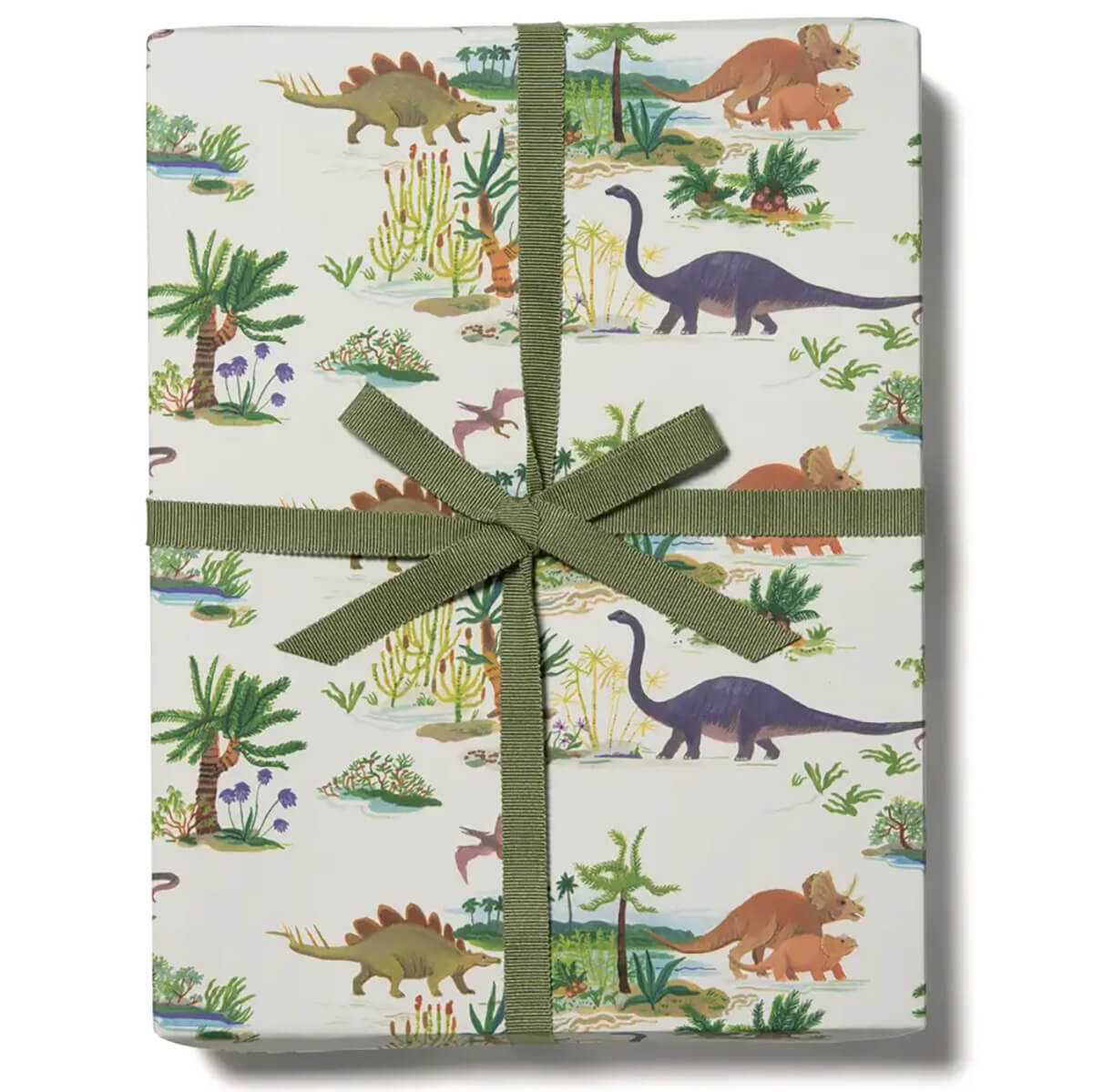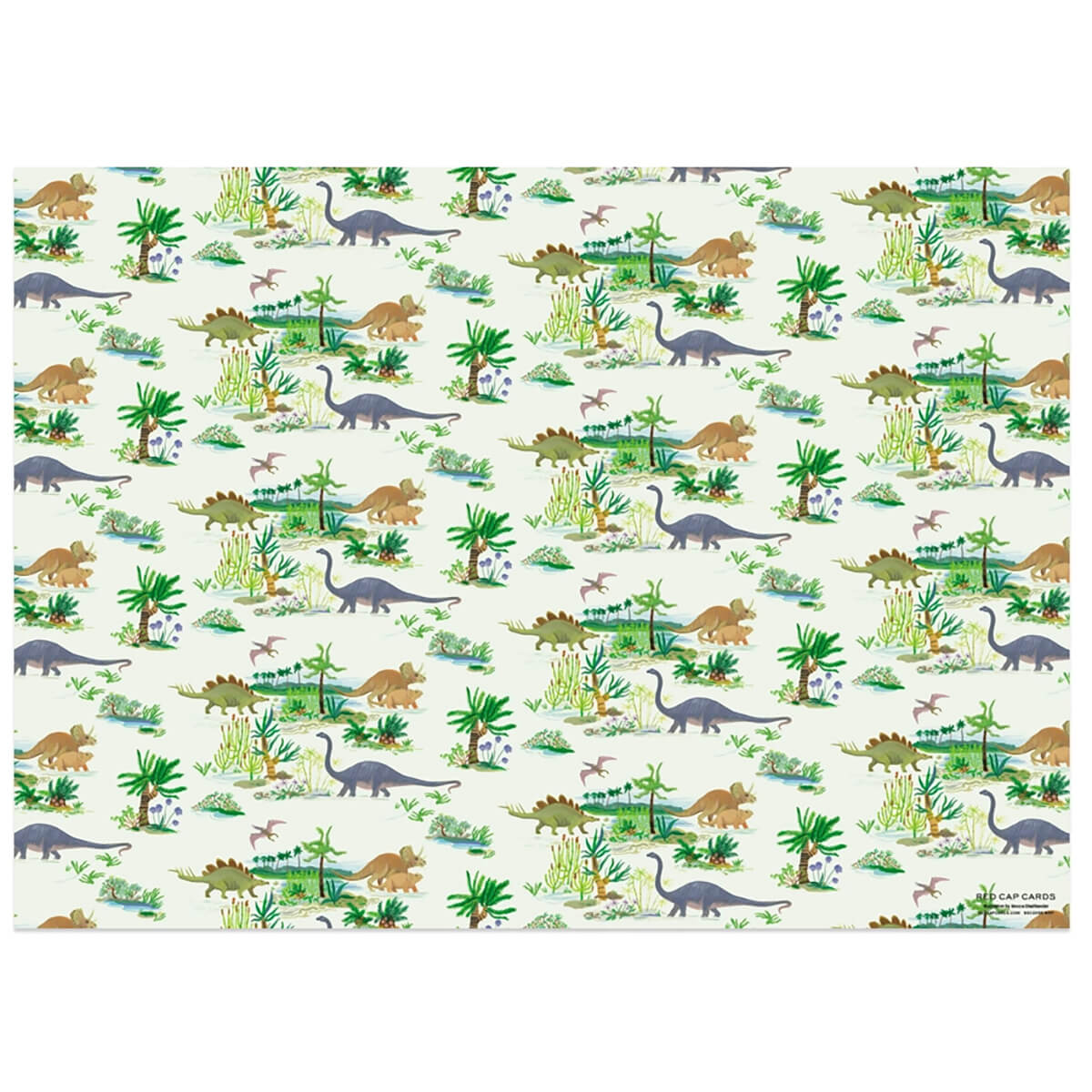 Dinosaurs gift wrap by Red Cap Cards. Sheet or roll of wrapping paper. Each sheet measures 19x27 inches.