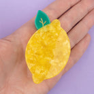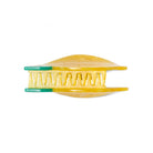 Lemon hair claw by Coucou Suzette. Full acetate hair claw shaped as a lemon. We love its small green leaf and its golden details which give even more pep to this already tangy citrus fruit. The perfect colourful accessory for hairstyles done in a hurry. Made from plant-based eco-friendly cellulose acetate.