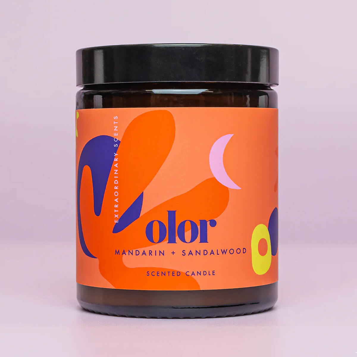 Mandarin and Sandalwood Fragranced Jar Candle by Olor. Evoke the senses with invigorating top notes of mandarin, pink pepper and cardamon followed by a sensual heart of coriander leaf, white freesia and sandalwood sat on a velvety base of the cocoa bean. The dark glass jar is the perfect choice for individuals seeking a high-quality luxury candle with a relaxed and artistic vibe. The jar's sleek design, combined with Olor's vibrant and imaginative branding, offers the best of both worlds - a luxury candle housed in a vessel that seamlessly blends into any environment. Enjoy the freedom to express your style and indulge in a touch of luxury with this unique and captivating scented jar candle.