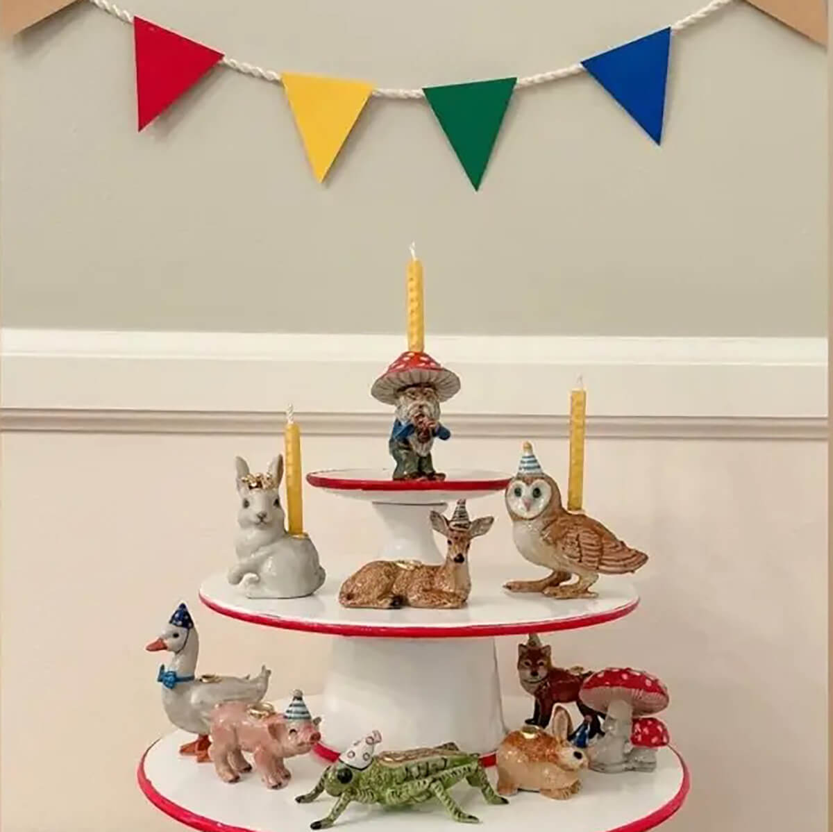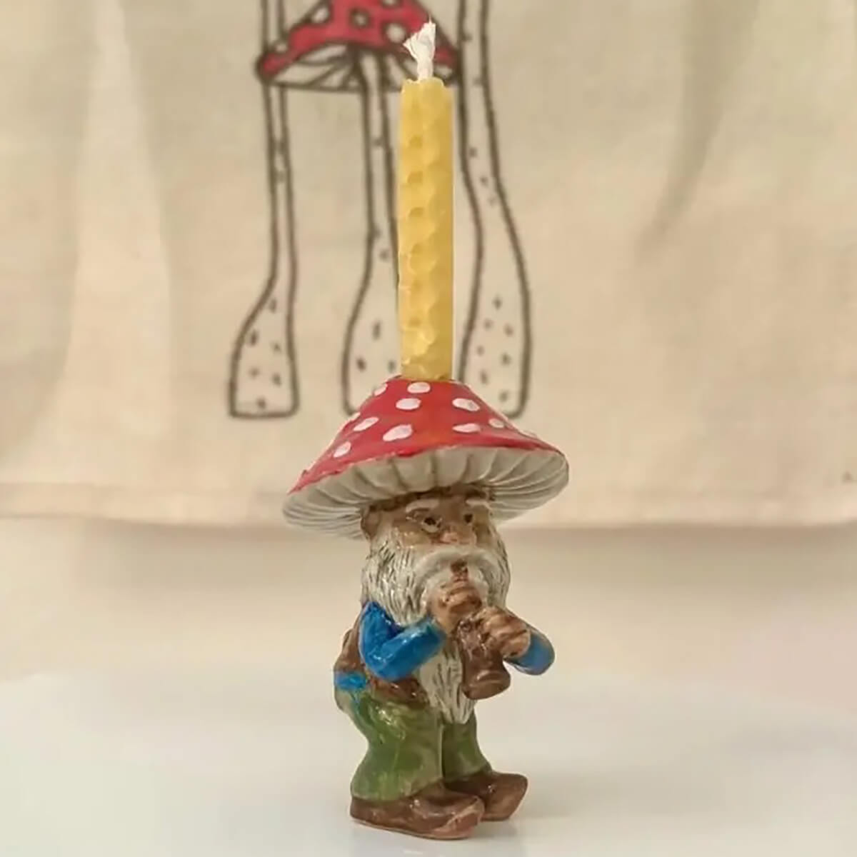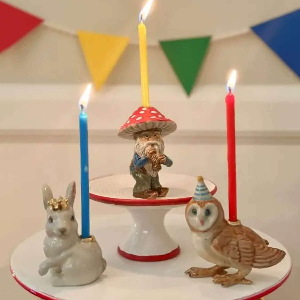 Mushroom ceramic cake topper by Camp Hollow. Crafted in fine porcelain and meticulously hand-painted, this beautiful heirloom quality candle holder will celebrate every birthday and occasion for years to come.