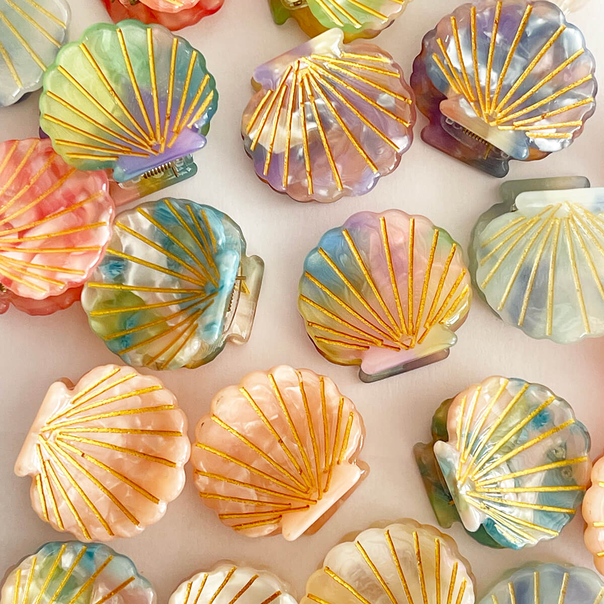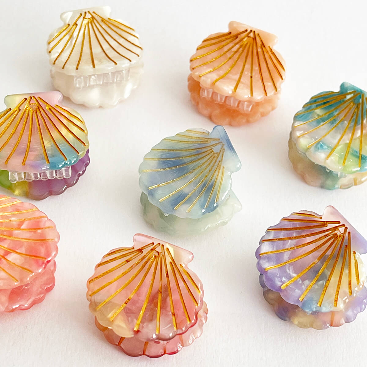 Shell mini hair claw by Hello Sakura. Full acetate pretty little shell hair claws with gold details. Made from plant-based eco-friendly cellulose acetate.