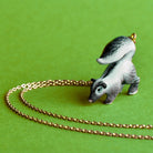 Skunk ceramic pendant by Camp Hollow. Hand-crafted and meticulously hand-painted porcelain animal pendant on a 24 karat gold-plated stainless steel chain. Comes in its own beautiful story book shaped gift box. Every Camp Hollow wearable is designed as a limited edition, ensuring that your special pendant animal will become a cherished heirloom for generations to come.