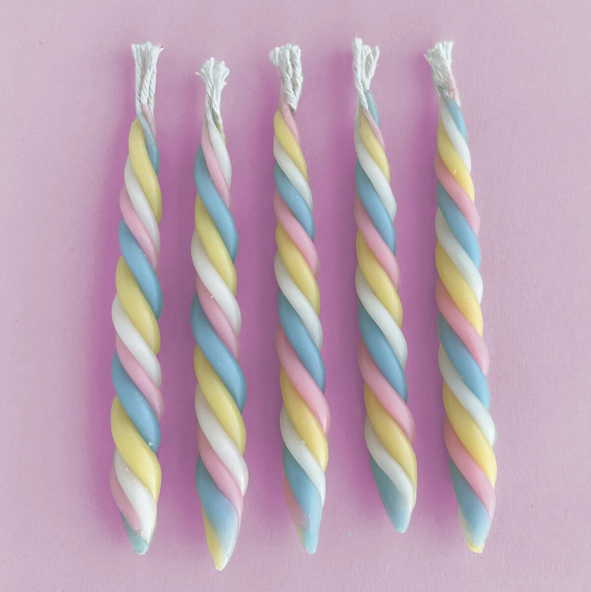 Twisted Marshmallow Beeswax Birthday Candle Set by Camp Hollow. Illuminate your special moments with these 100% beeswax birthday candles. This set of multi-flame twisted candles are the finishing touch for your special celebration cake. Crafted by nature, they bring a warm, golden glow to your memorable occasions.