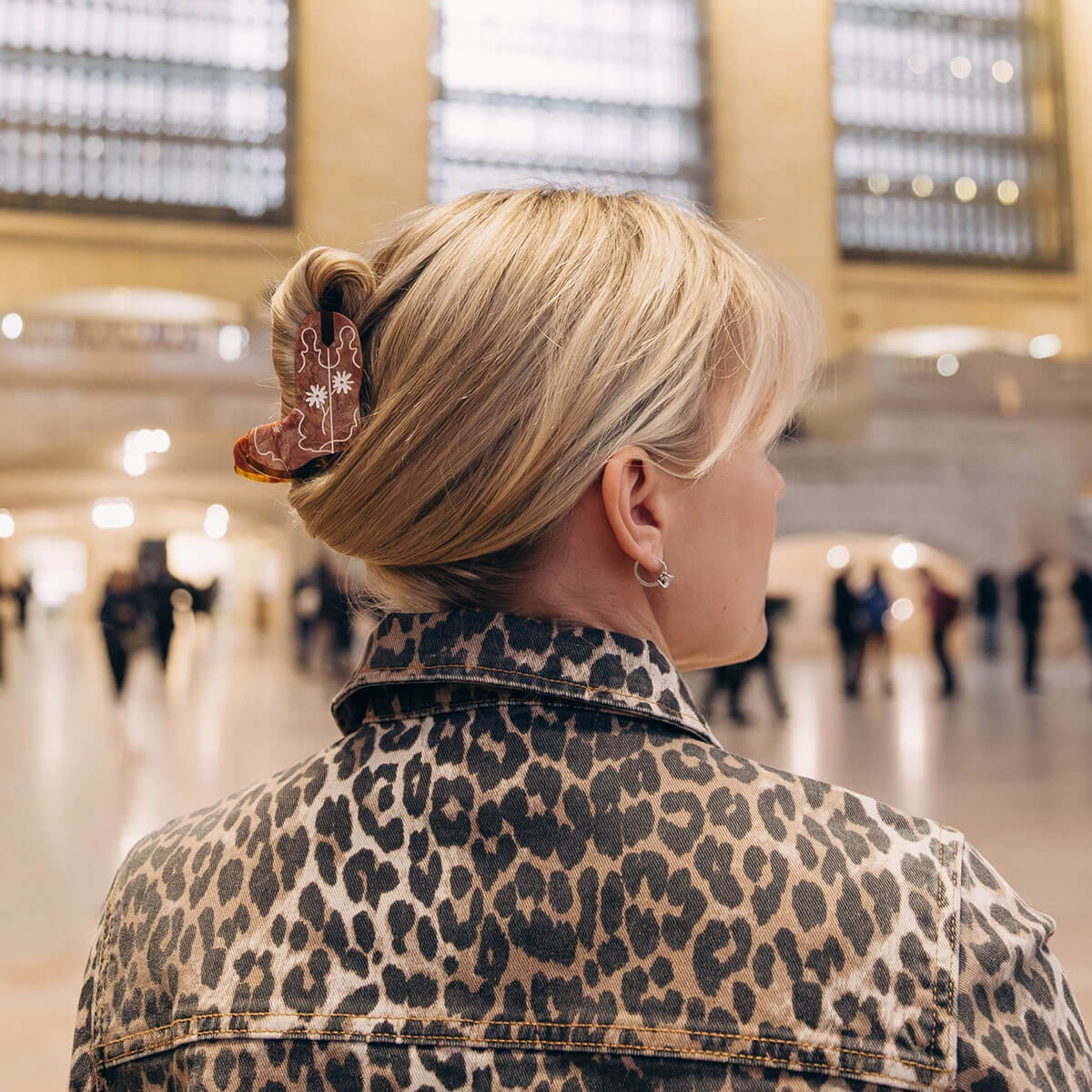 Daisy Cowboy Boot Hair Claw by Solar Eclipse. Hand-painted by the Solar Eclipse artists, this original daisy cowboy boot claw clip is crafted in small batches. It's designed to upgrade your routine and be treasured for years to come. Designed in New York City, this clip is double-sided, for a perfect look from all angles. Crafted from eco-friendly cellulose acetate, a sustainable and biodegradable material made from recycled wood pulp, this clip offers both beauty and responsibility.