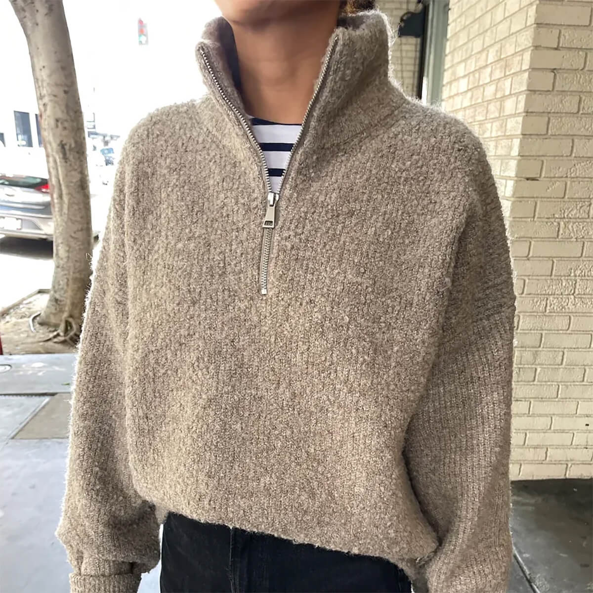 Andre Sweater by Le Bon Shoppe. A casual and easy to wear piece, this half-zip mock-neck yarn knit sweater will keep your neck warm and elevate any outfit. The perfect boxy fit, made from super dreamy fluffy boucle yarn that is also lightweight and ultra soft.