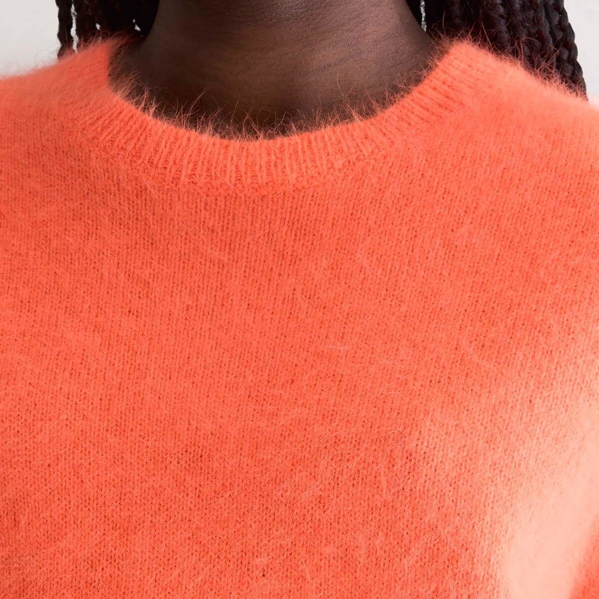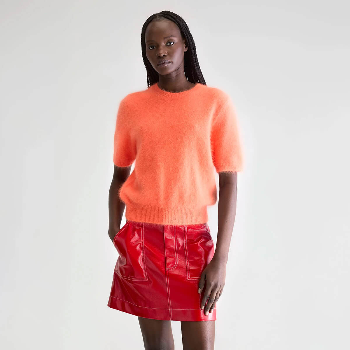 Datad Angora Blend Sweater by Bellerose. Regular crewneck sweater with short sleeves, crafted from a soft angora blend in fluo orange.