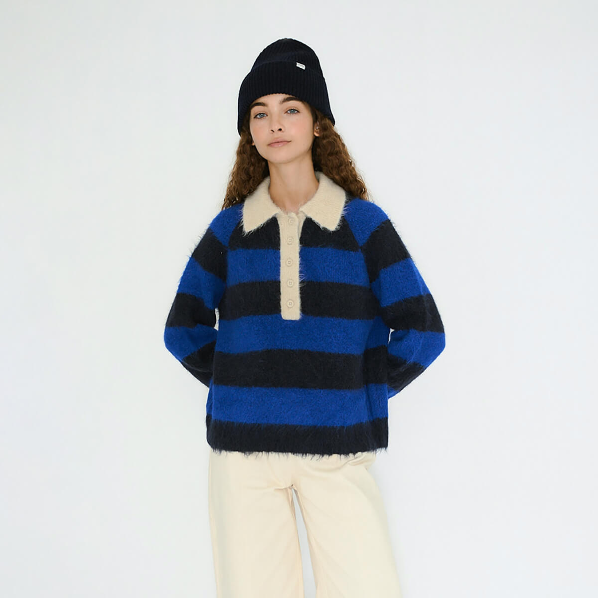 Frank Striped Polo in Navy / Ultramarine by The Tiny Big Sister
