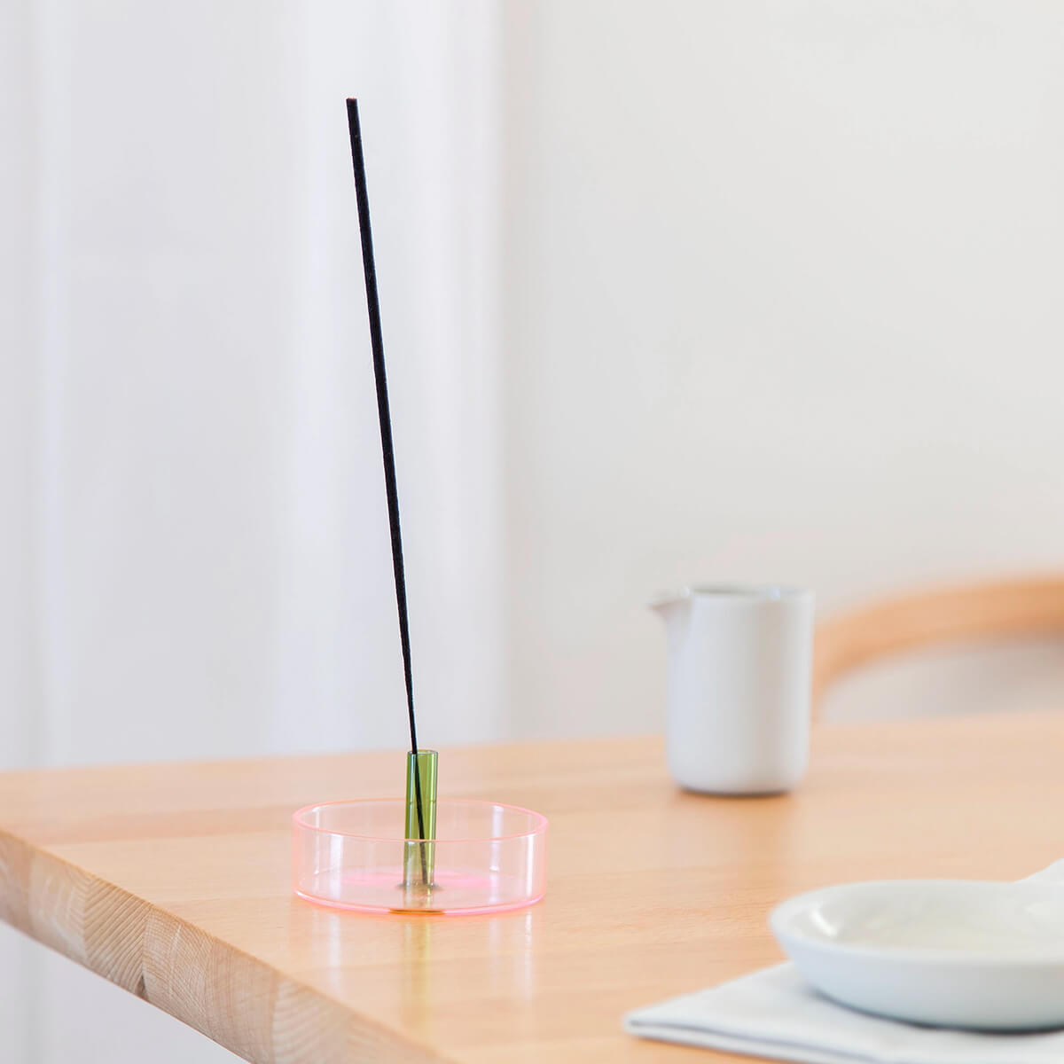Duo Tone Glass Incense Holder by Block Design. Dual colour glass incense holder. Crafted from borosilicate glass the incense holders offer a simple, elegant display for incense sticks.