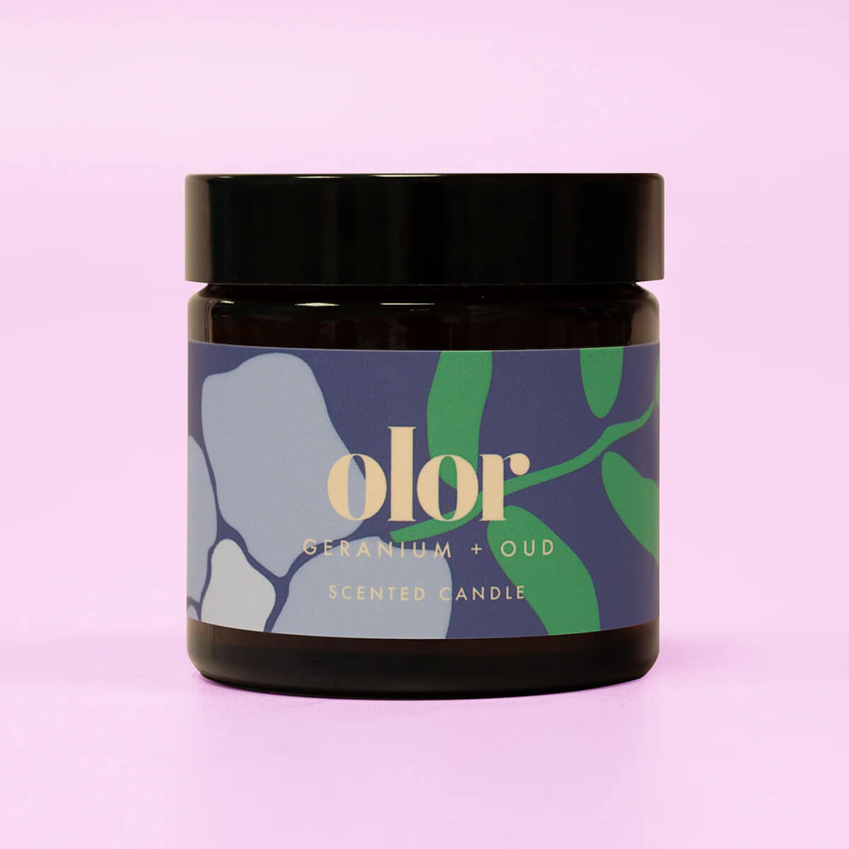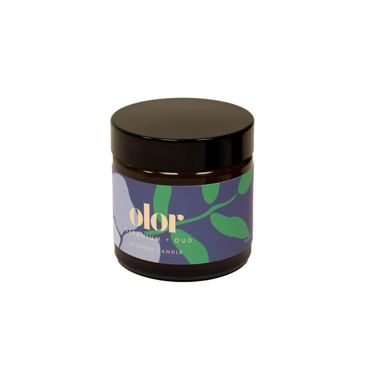 Geranium and Oud Mini Jar Candle by Olor. Uncover the luxurious depth of smoky oud wrapped in velvety geranium, softened by rose and peony, with hints of lemon and pear resting on a warm base of vanilla, cashmere and woods. Small in size, but big on fragrance, the Olor mini jar candle delivers a luxurious scent experience in a beautifully compact form. Designed for those who adore little luxuries, this elegant mini is perfect for smaller spaces, travelling, or for those who love to layer and blend fragrances throughout their home. Though petite, each mini jar is thoughtfully crafted with the same attention to detail and high-quality ingredients as Olor's larger candles, effortlessly filling your space with beautiful, long-lasting fragrance. Whether you’re trying a new scent, curating a personal mix of aromas, or gifting a touch of luxury, the Olor mini jar candle brings sophistication and scent to every moment.