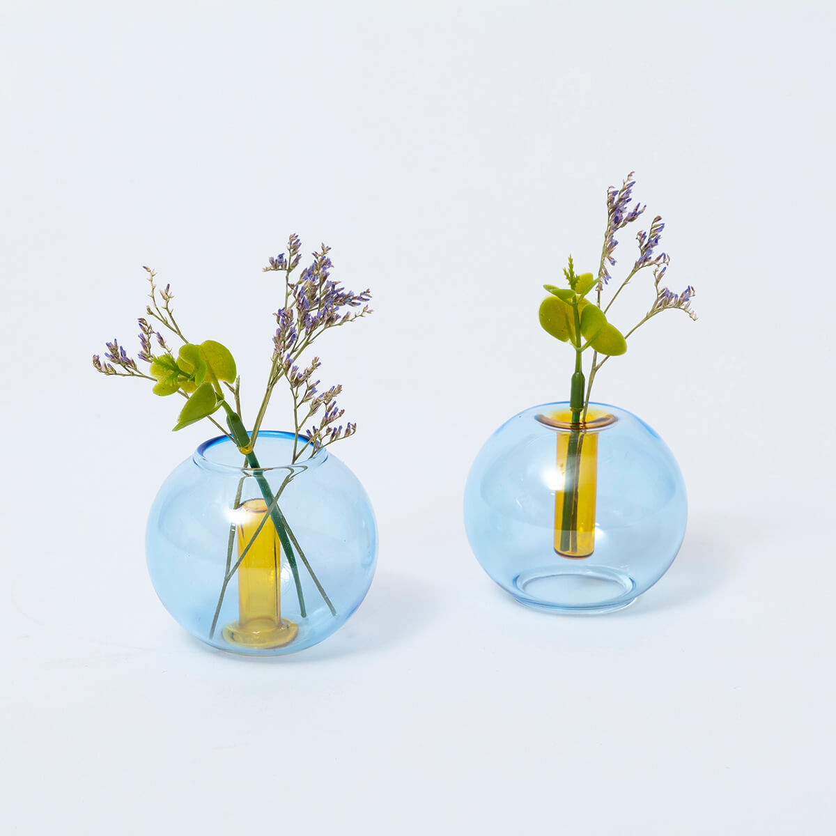 Mini Bubble Glass Vase in Blue / Yellow by Block Design