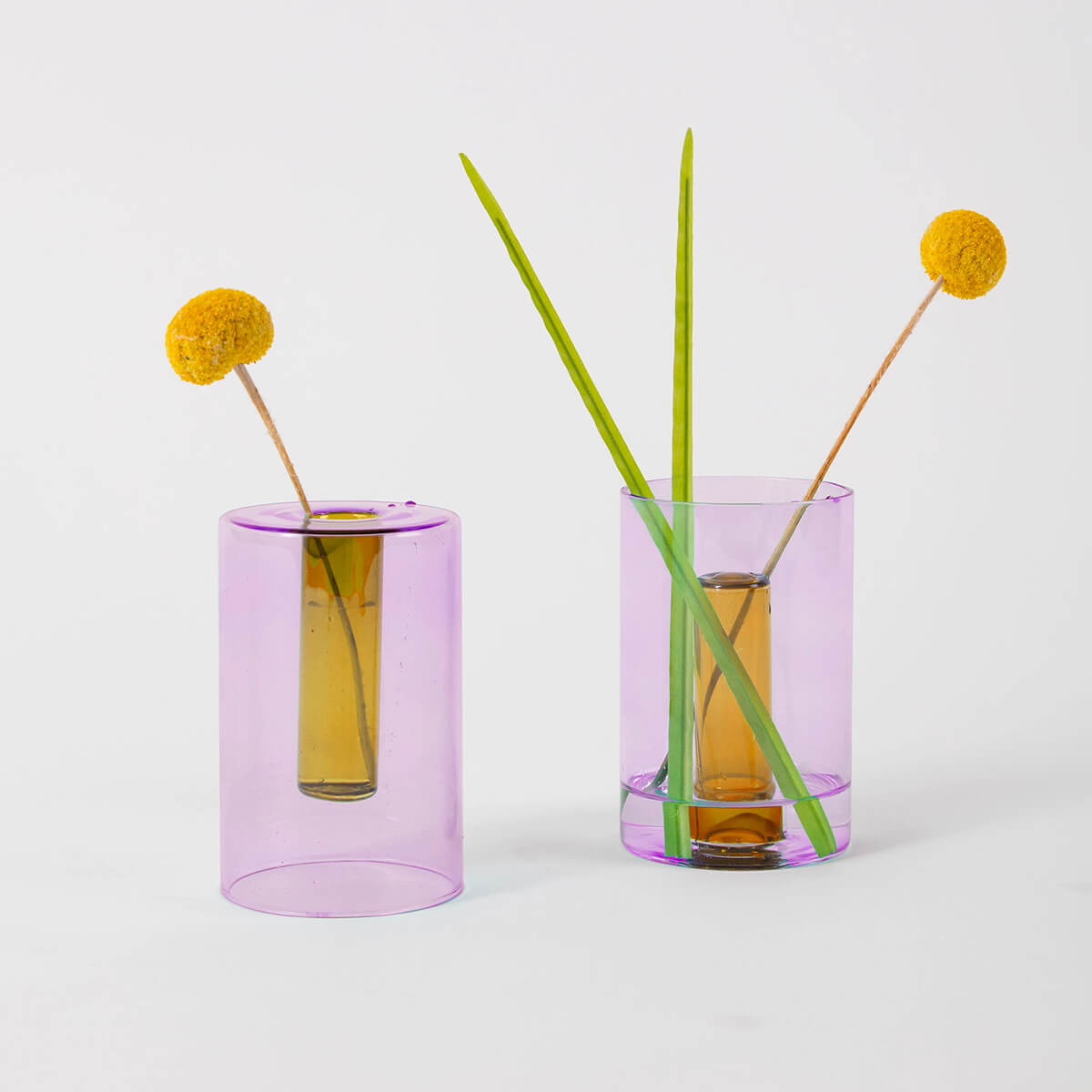 Small Reversible Glass Vase in Lilac / Peach by Block Design