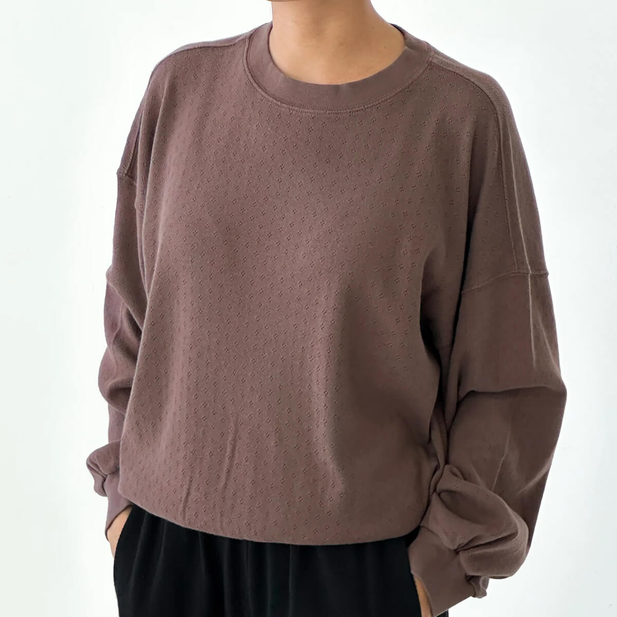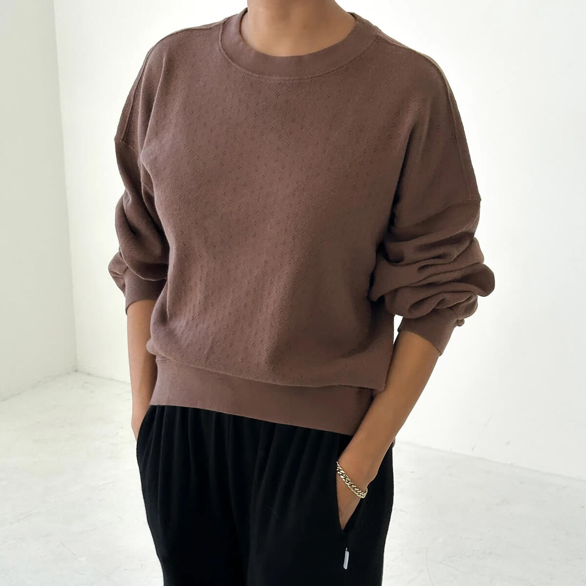 Pointelle Core Sweatshirt in Chocolate by Le Bon Shoppe