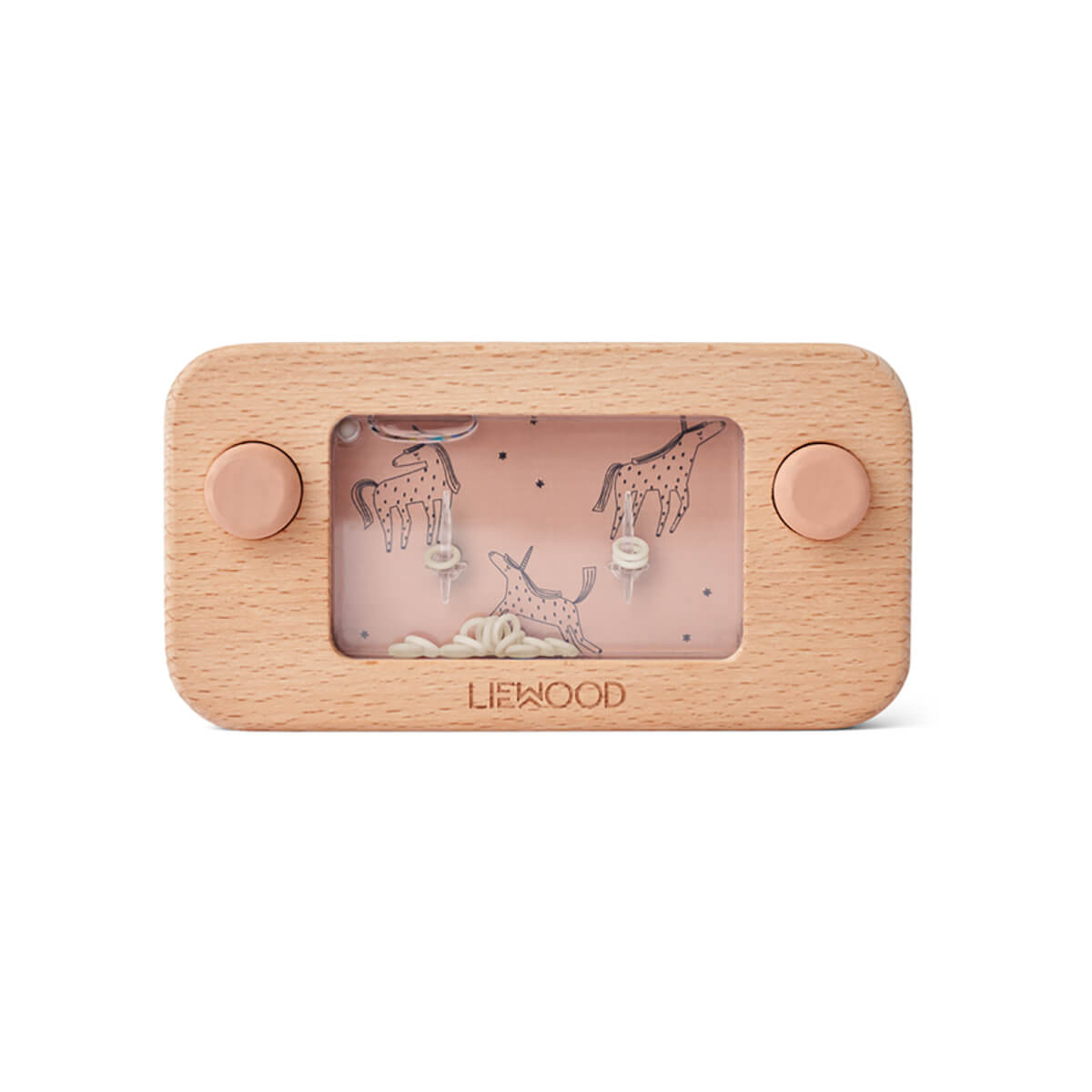 Annegrete Water Game by Liewood. This classic handheld water game is endless fun. Press the two buttons to make the rings land on the spikes. A perfect quiet travel game.
