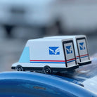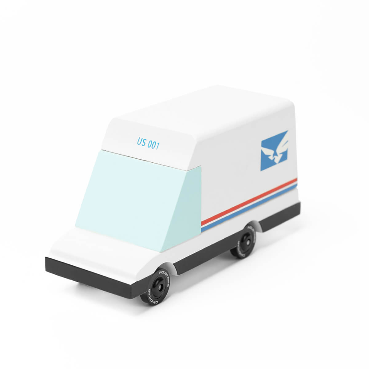 Futuristic Mail Van Candyvan By Candylab Toys.  The Mail Van 2.0 is here: it may look like an odd bird, but it has increased cargo capacity, and probably electric propulsion - all wrapped in a red-white-and-blue livery. Tiny package delivery, right on time!
