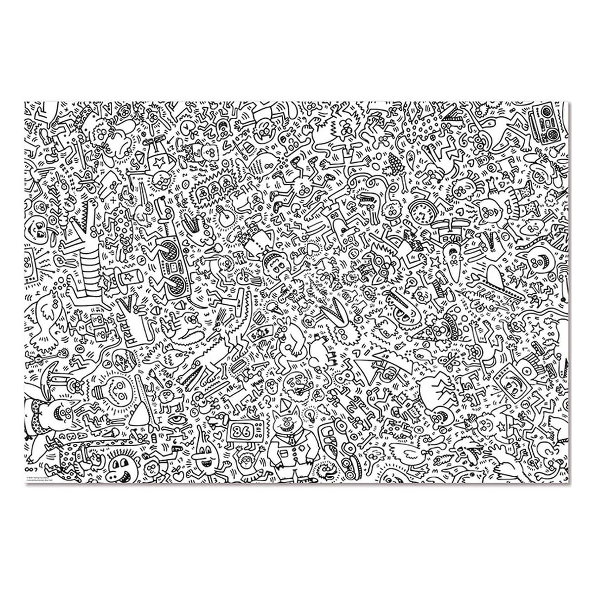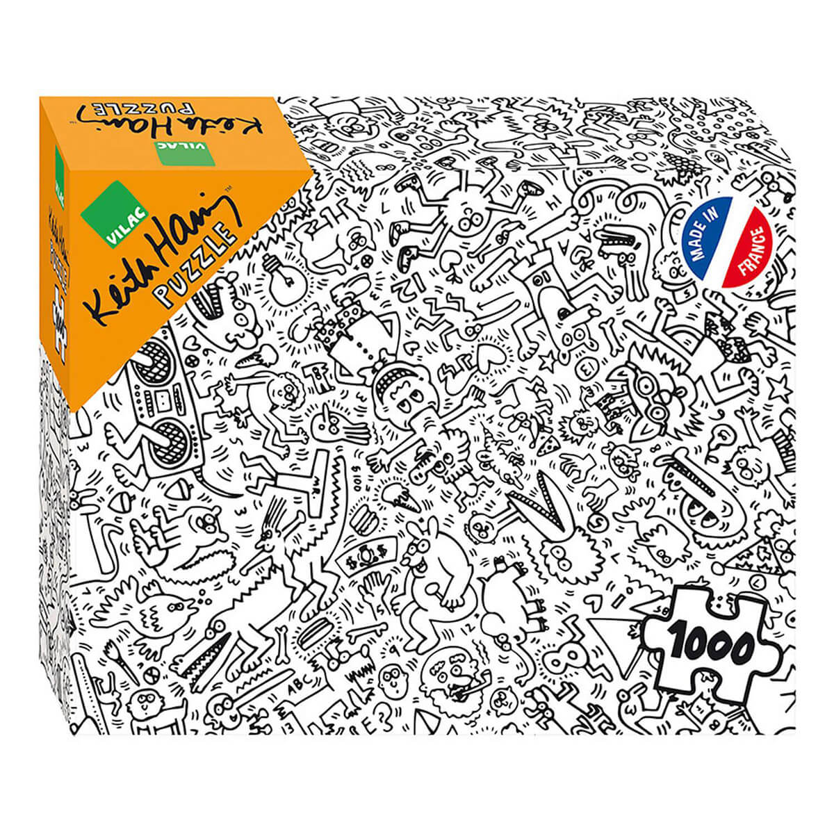 Keith Haring 1000 Pc Puzzle by Vilac. This 1000 piece cardboard puzzle uses iconic patterns from Keith Haring for a unique and original result which makes this puzzle a real puzzle!