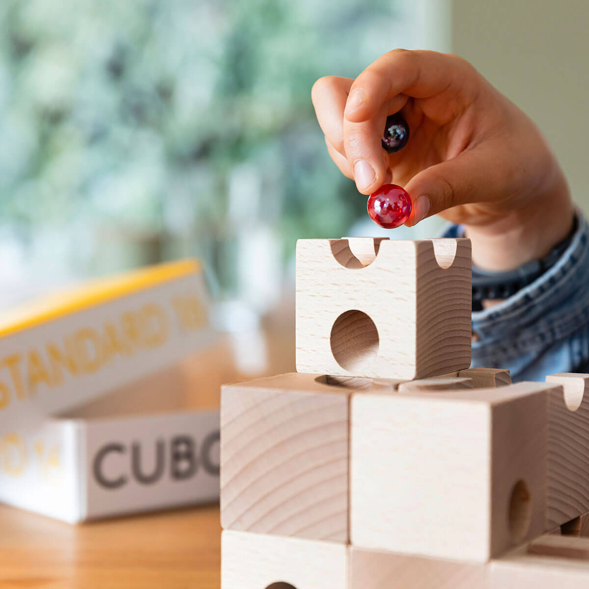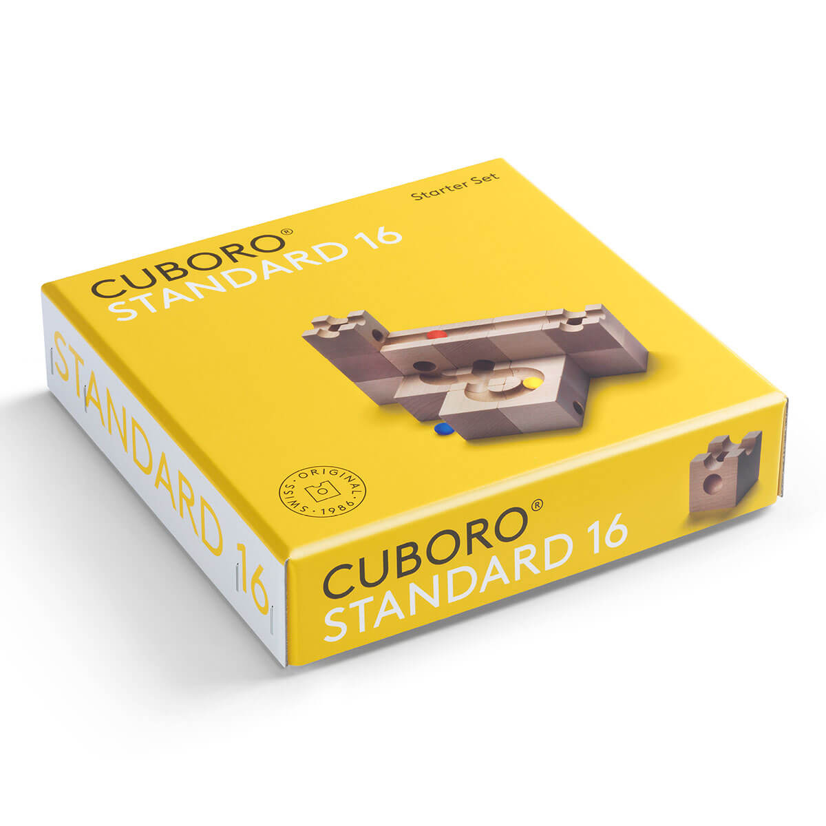 Standard 16 Marble Run Set by Cuboro. This starter set features all the basic elements of the world of Cuboro. Use rails and cubes to create original structures and your first exciting marble runs. With further Cuboro sets you can combine the starter elements step by step into larger track systems.