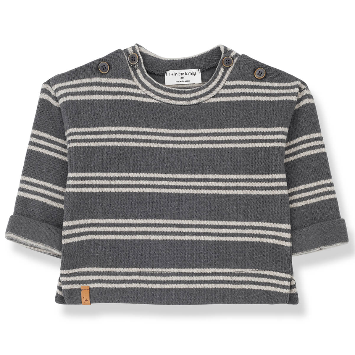 Gregori Top by 1+ in the Family. A long sleeved baby t-shirt in a soft striped fleece.